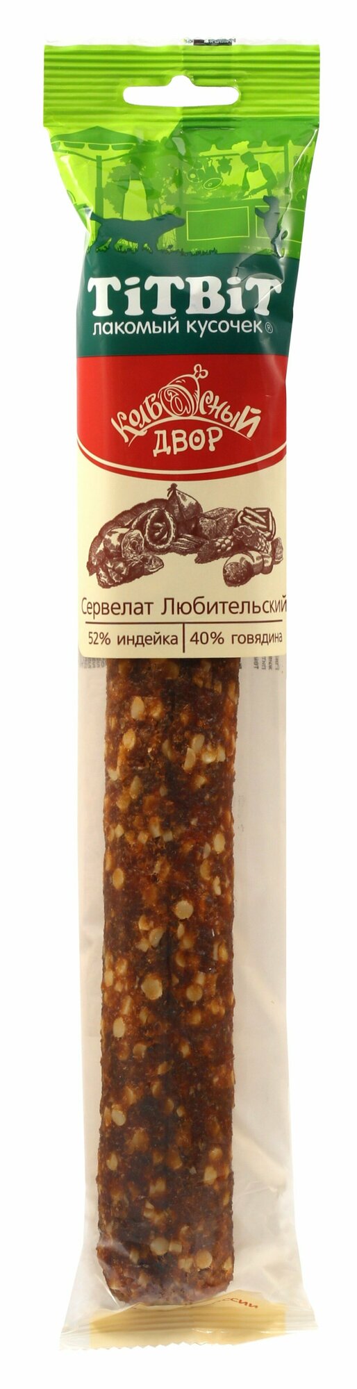 СохранитьЛакомство TiTBiT колбасный двор сервелат любительский для собак (270 г) интересное:
