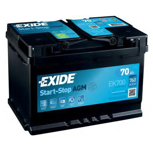 Exide Ek700 Agm_аккумуляторная Батарея! 19.5/17.9 Евро 70Ah 760A 278/175/190 Agm EXIDE арт. EK700