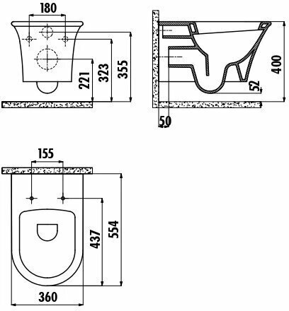 Унитаз Creavit MO320-11CB00E-0000 подвесной Белый без сиденья