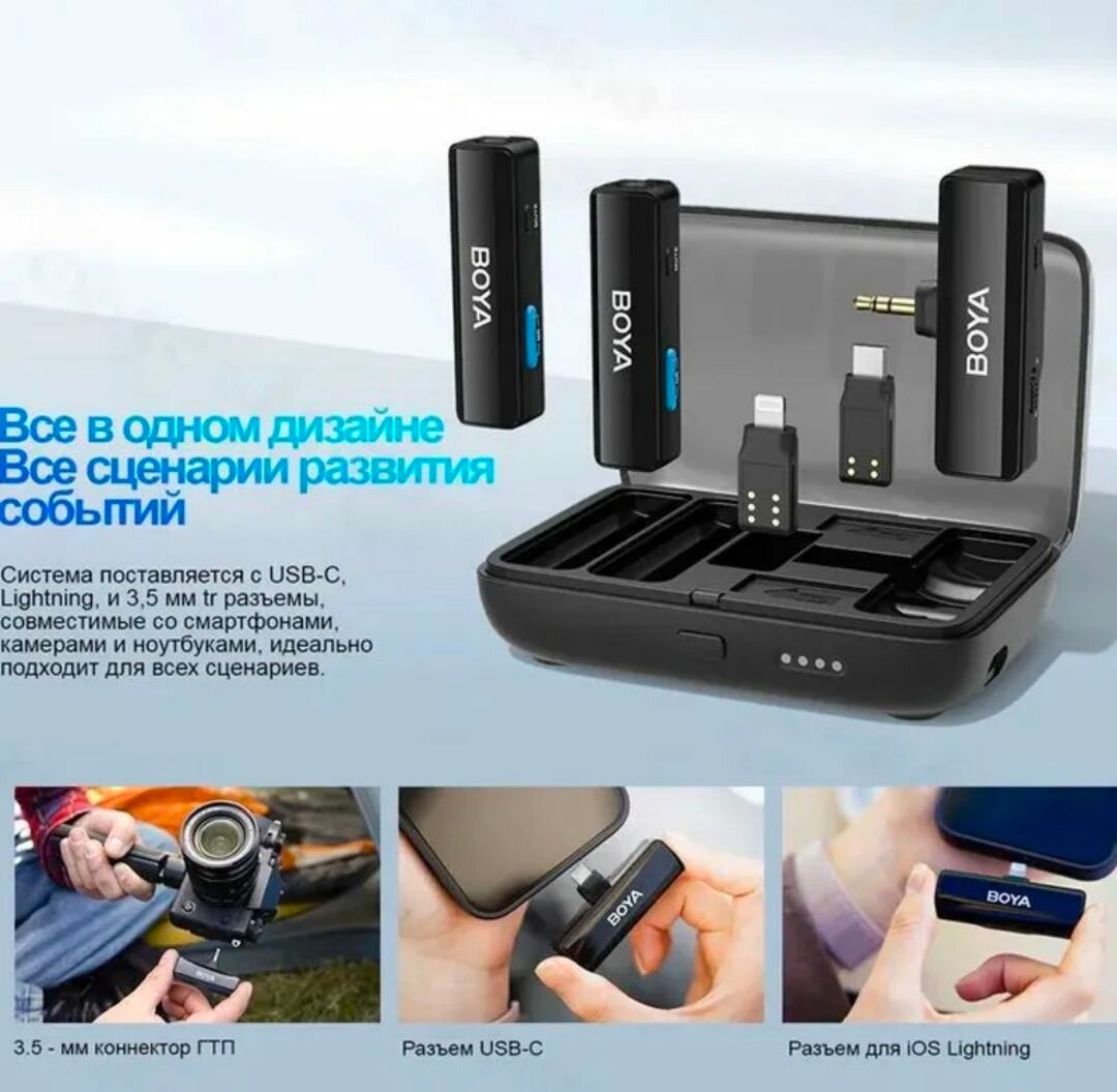Boya BY-XM6-K2Y Компактный двухканальный беспроводной микрофон с зарядным кейсом