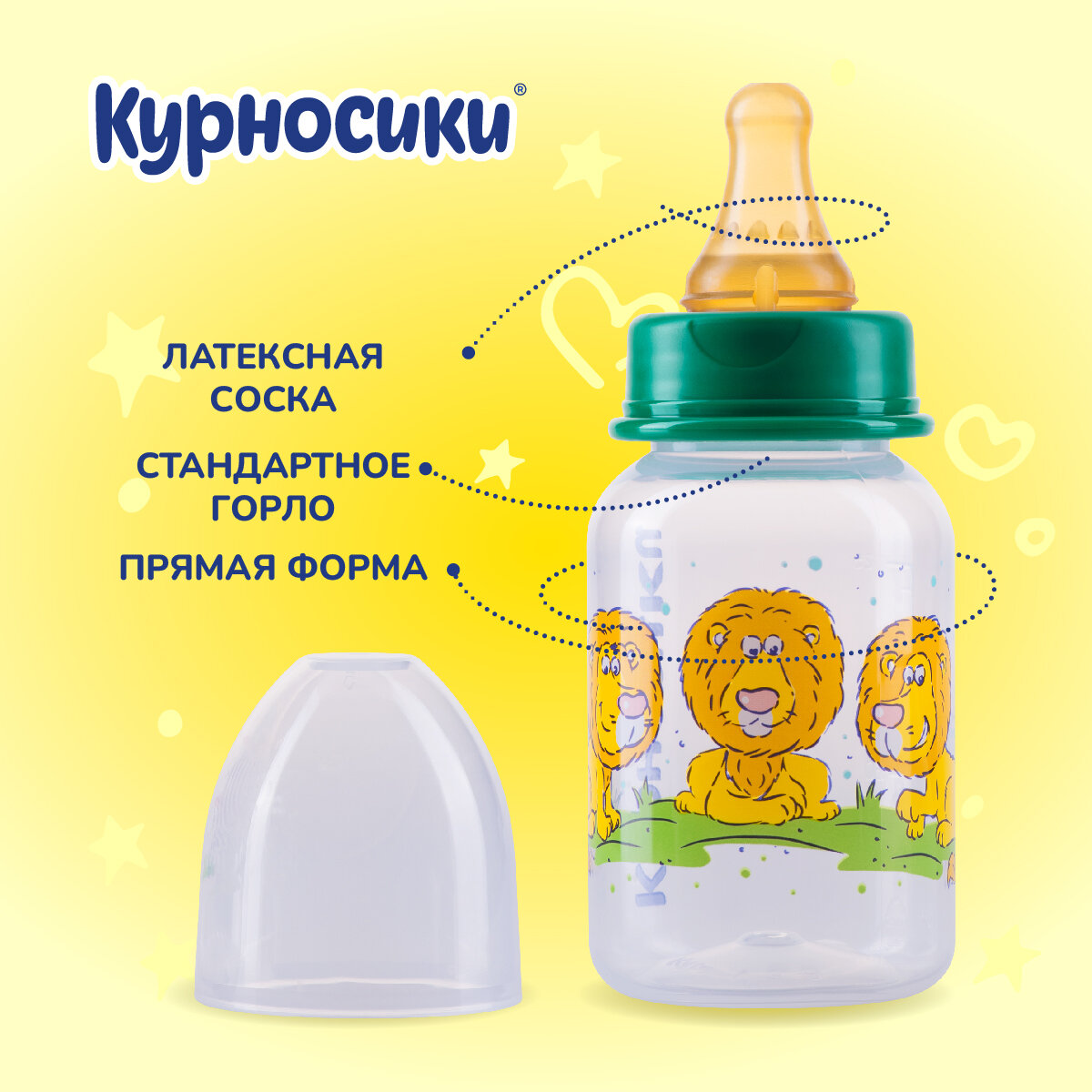 Купить Бутылочка для кормления новорожденного Курносики с латексной соской "Львы", 0+ мес, 125 мл, зеленый