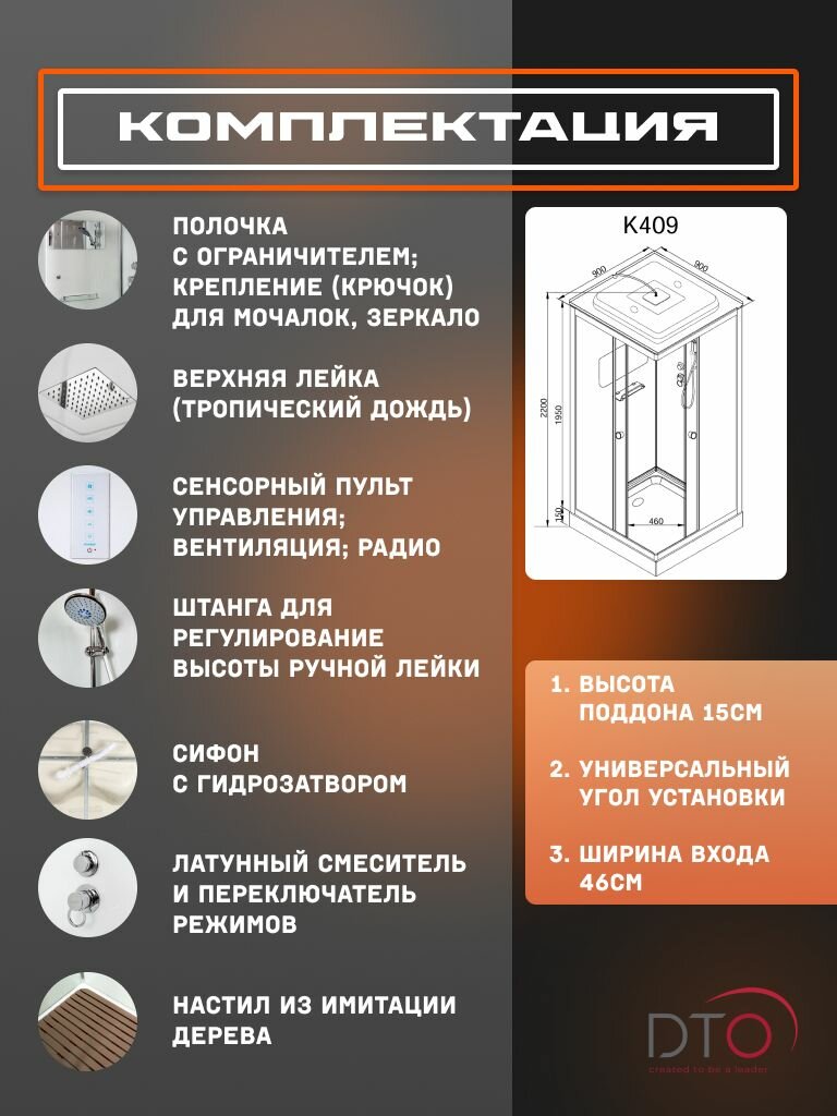 СохранитьДушевая кабина DTO (Deto) K409S с электрикой (90х90х220) низкий поддон, стекло прозрачное, универсальная интересное: