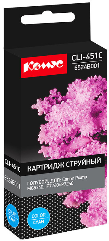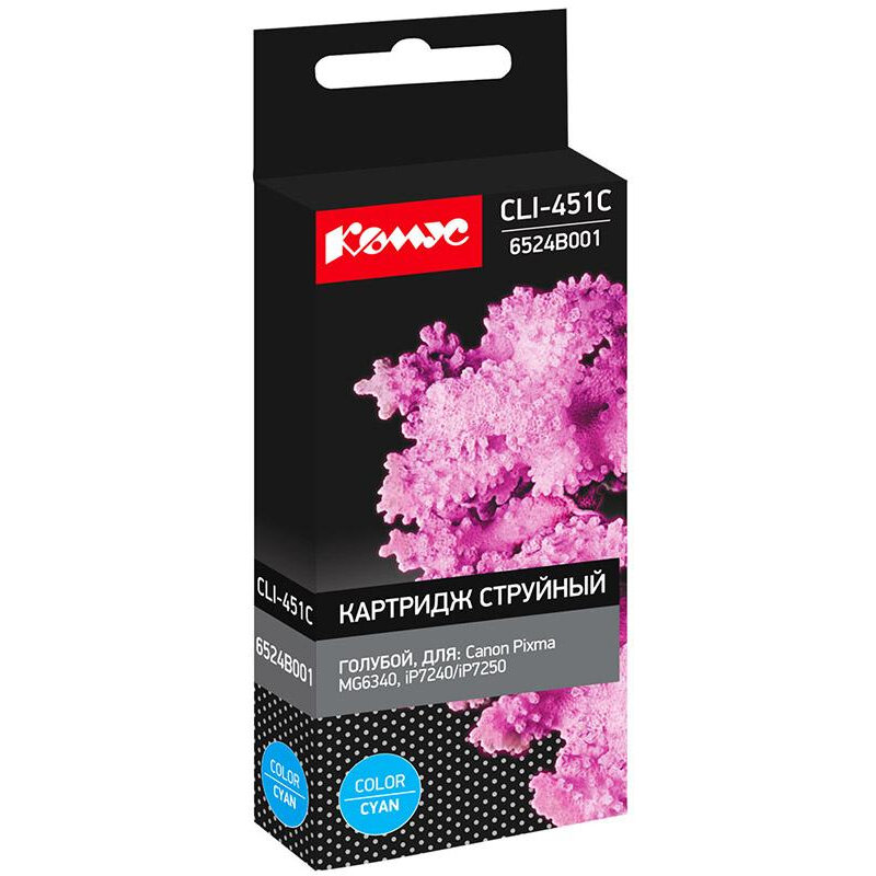 Картридж Комус CLI-451C/6524B001 для принтера Canon, струйный, совместимый, ресурс 332, голубой интересное: