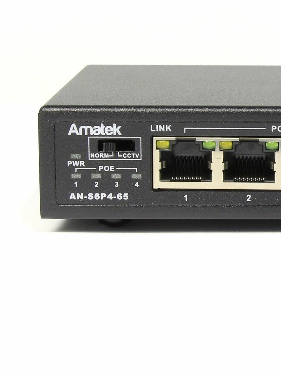 AN-S6P4-65 Amatek Сетевой коммутатор 6-портовый 100 Мбит/с коммутатор с PoE+ до 65Вт