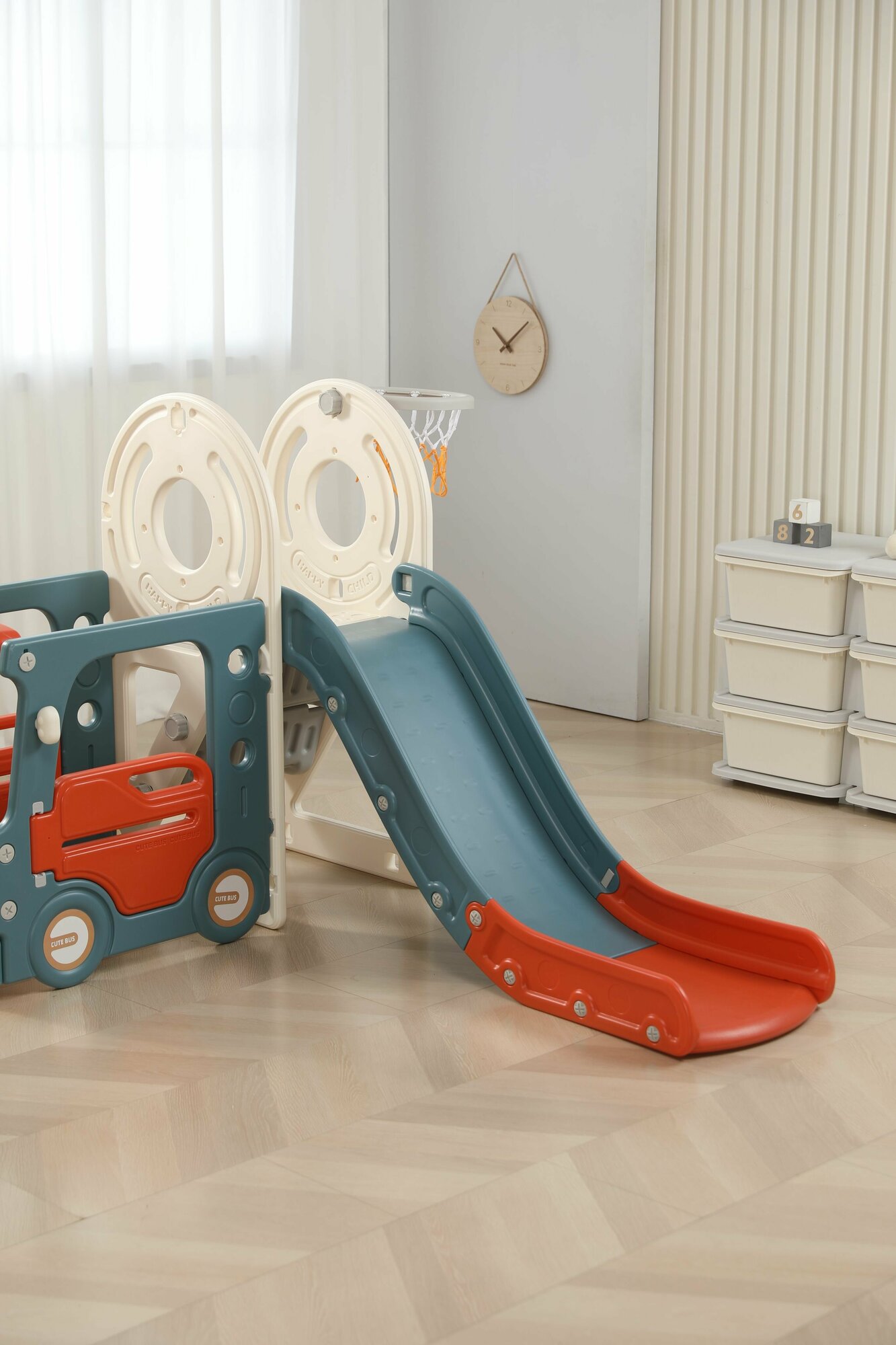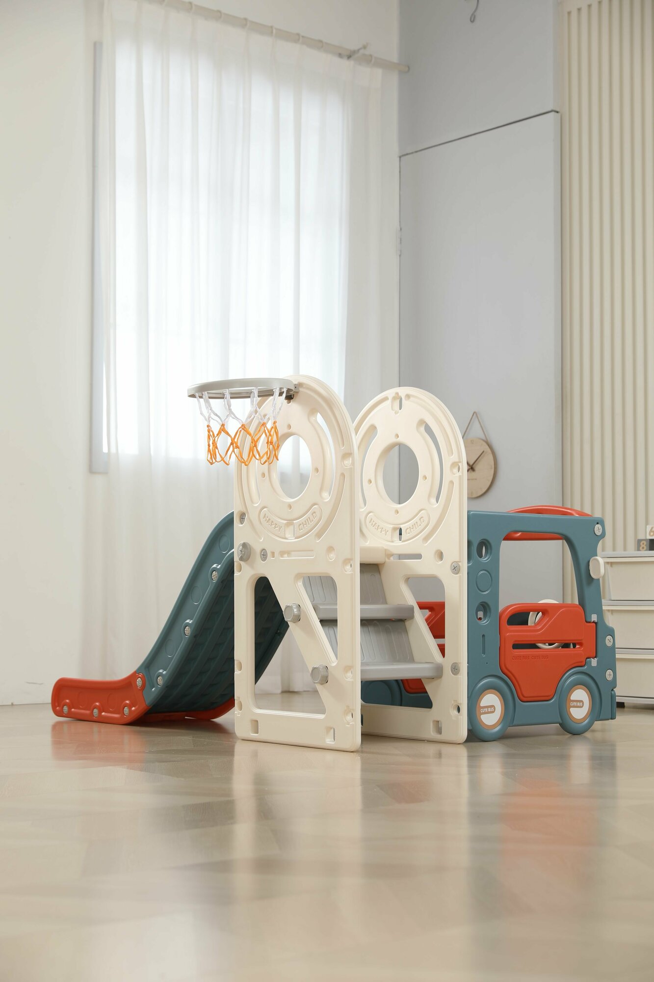 | Отзыв: | Купили данный комплекс для ребенка двух лет, идеально подходит. Комплекс довольно компактный, но в нем есть много всего при этом. Поставили прямо в холле дома, чтобы ребенку было где разгуляться. Комплекс устойчивый, безопасный для малыша. Пластик качественный, без постороннего запаха. Больше всего ребенку нравится кататься на качельке и съезжать с горки. Старается еще баскетбольное кольцо облюбовать, бросает маленький мячик туда. Да в общем все там интересно ему, часами играет, можно даже на детскую площадку не водить. Очень рады, что купили. |