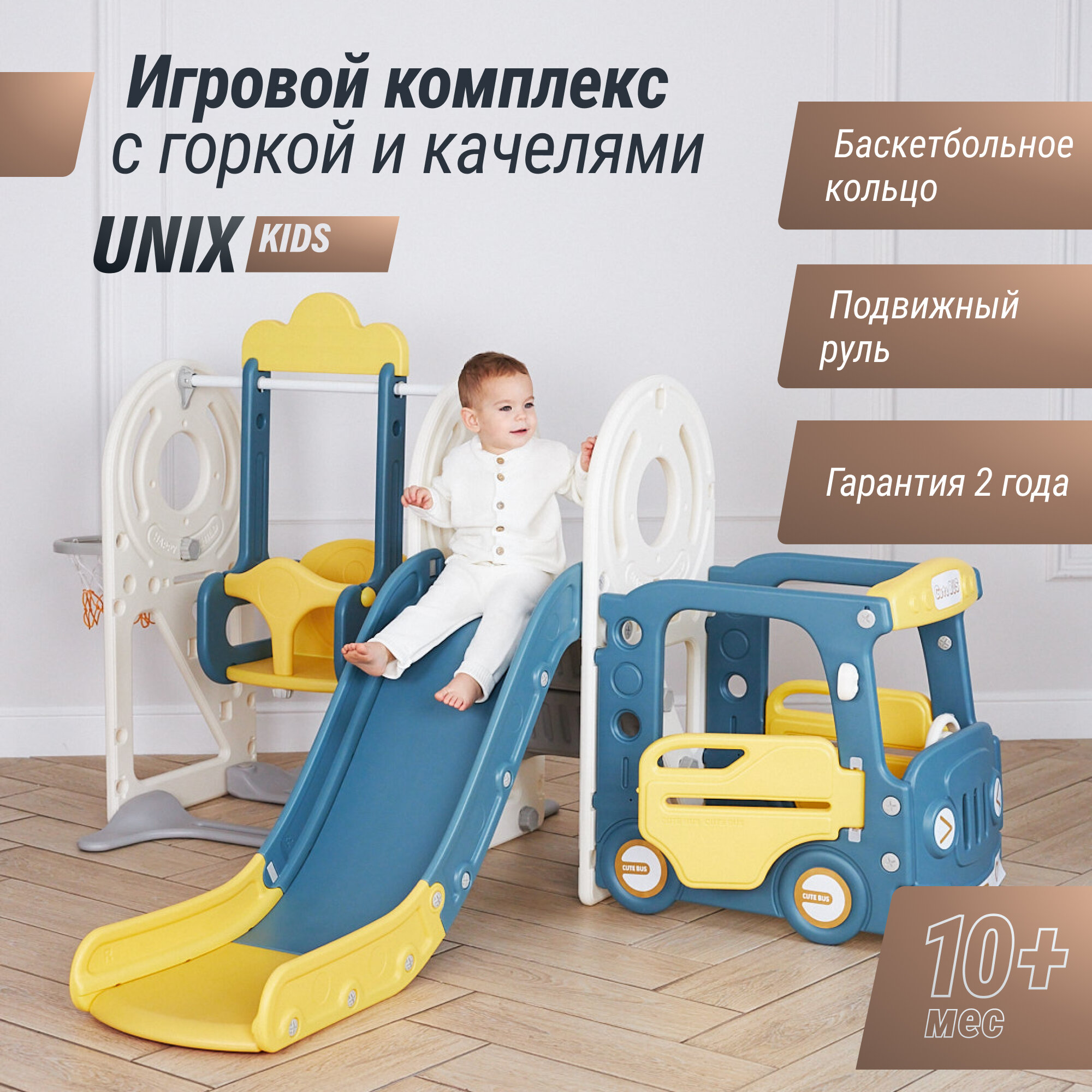 Купить Игровой комплекс UNIX Kids Bus Yellow для детей с горкой и качелями, для дома и улицы, желтый, синий