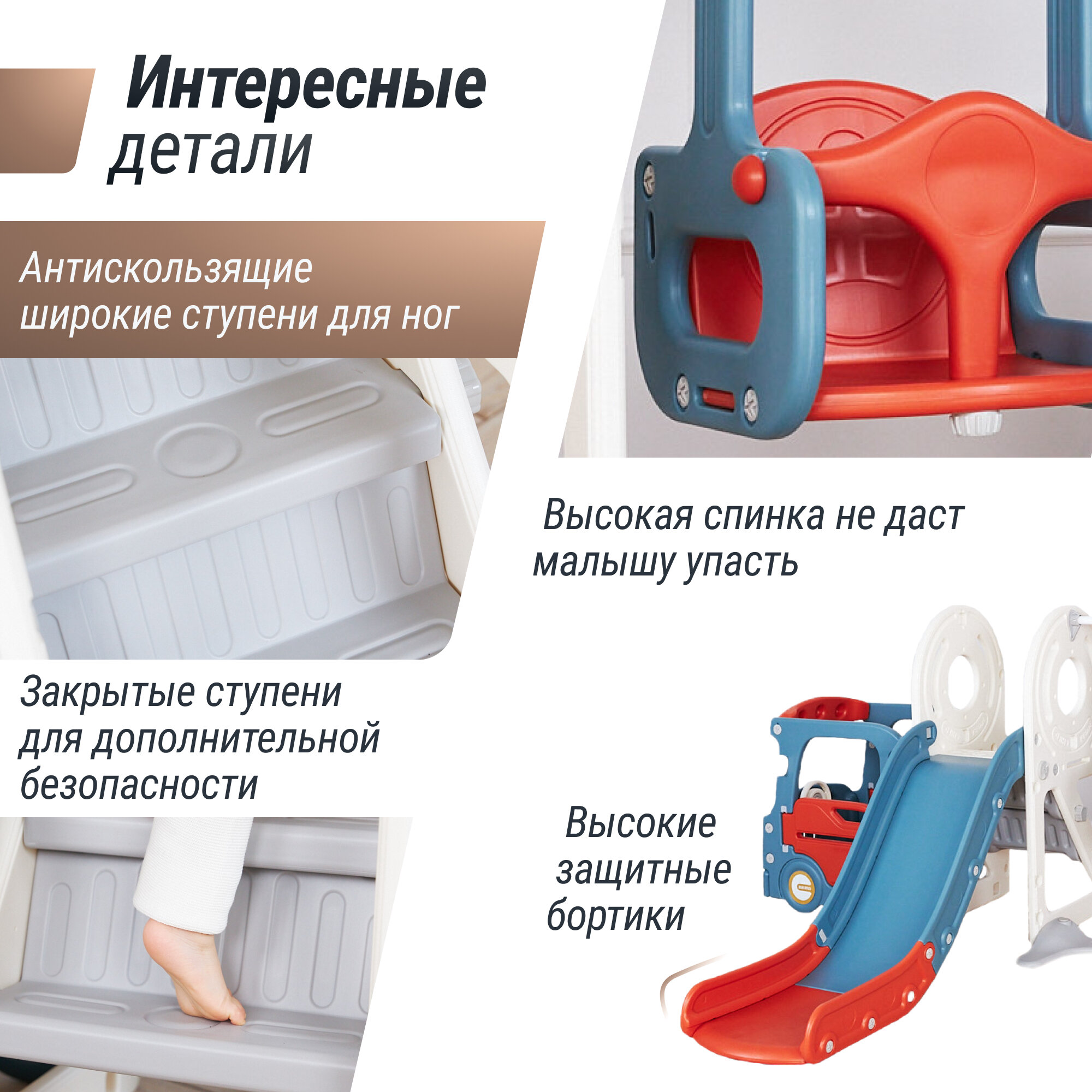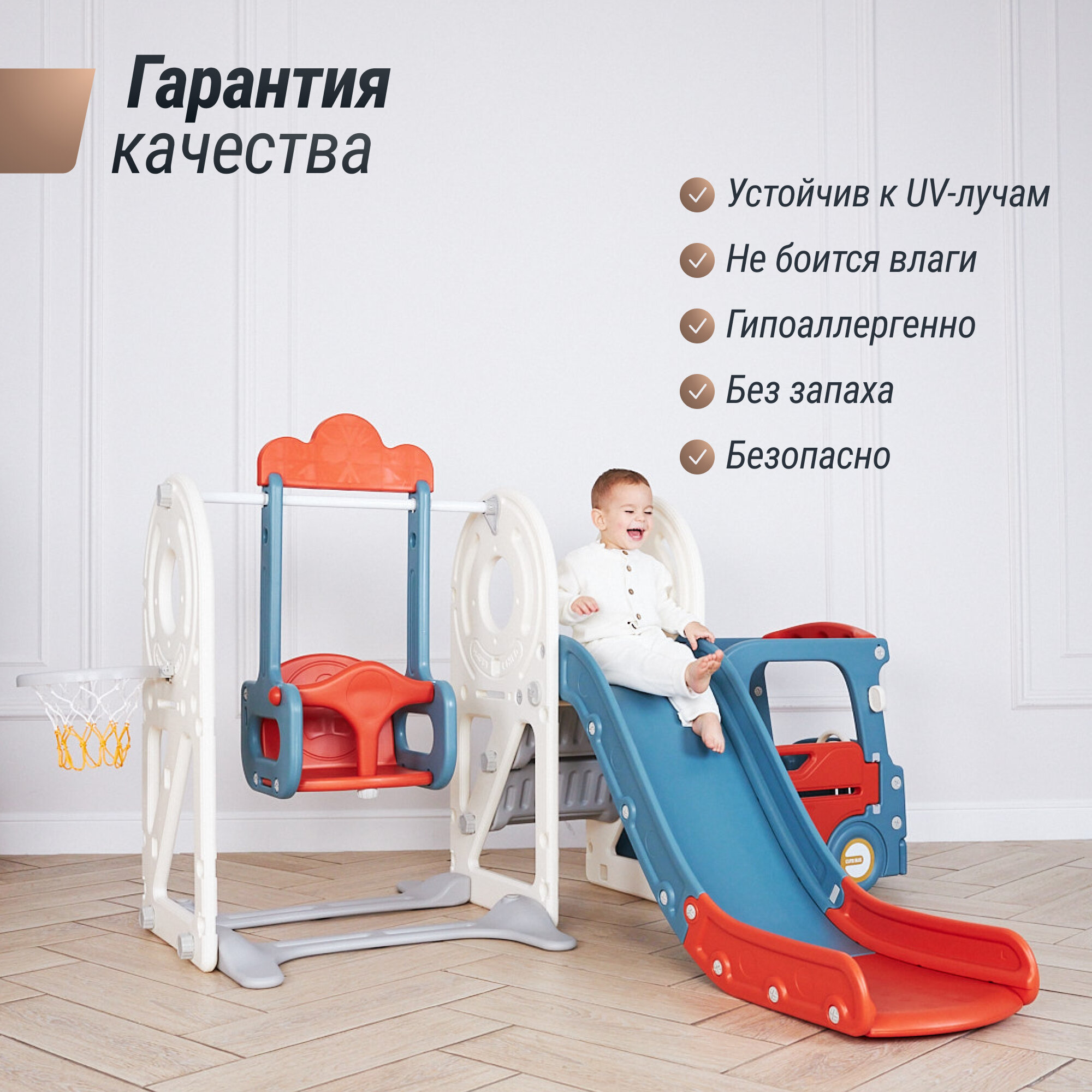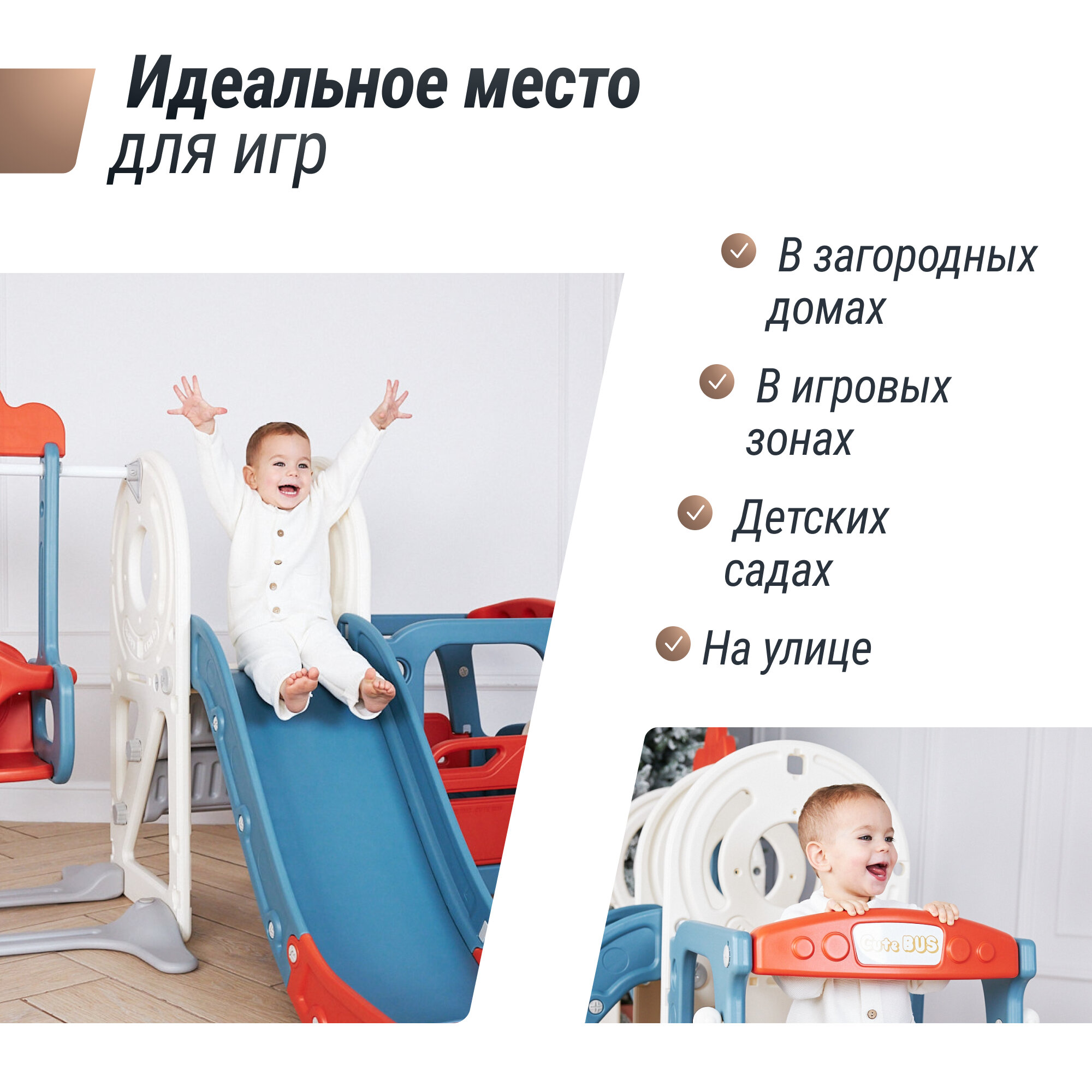 Купить Игровой комплекс UNIX Kids Bus Red для детей с горкой и качелями, для дома и улицы, красный, синий