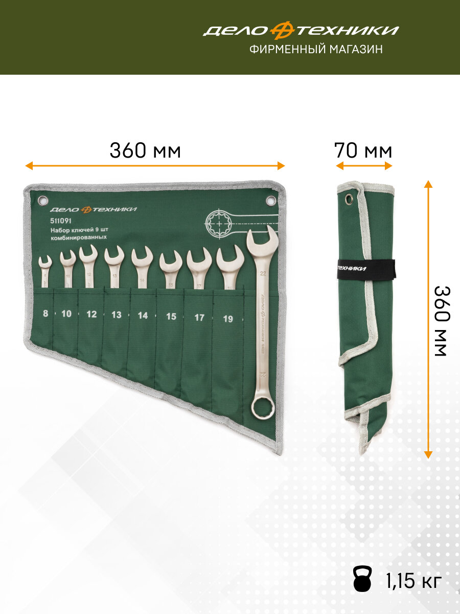 Набор рожково-накидных ключей ( 9 предметов) "Дело Техники" (в чехле; 8,10,12,13,14,15,17,19,22 мм) дело техники 511091 | цена за 1 шт