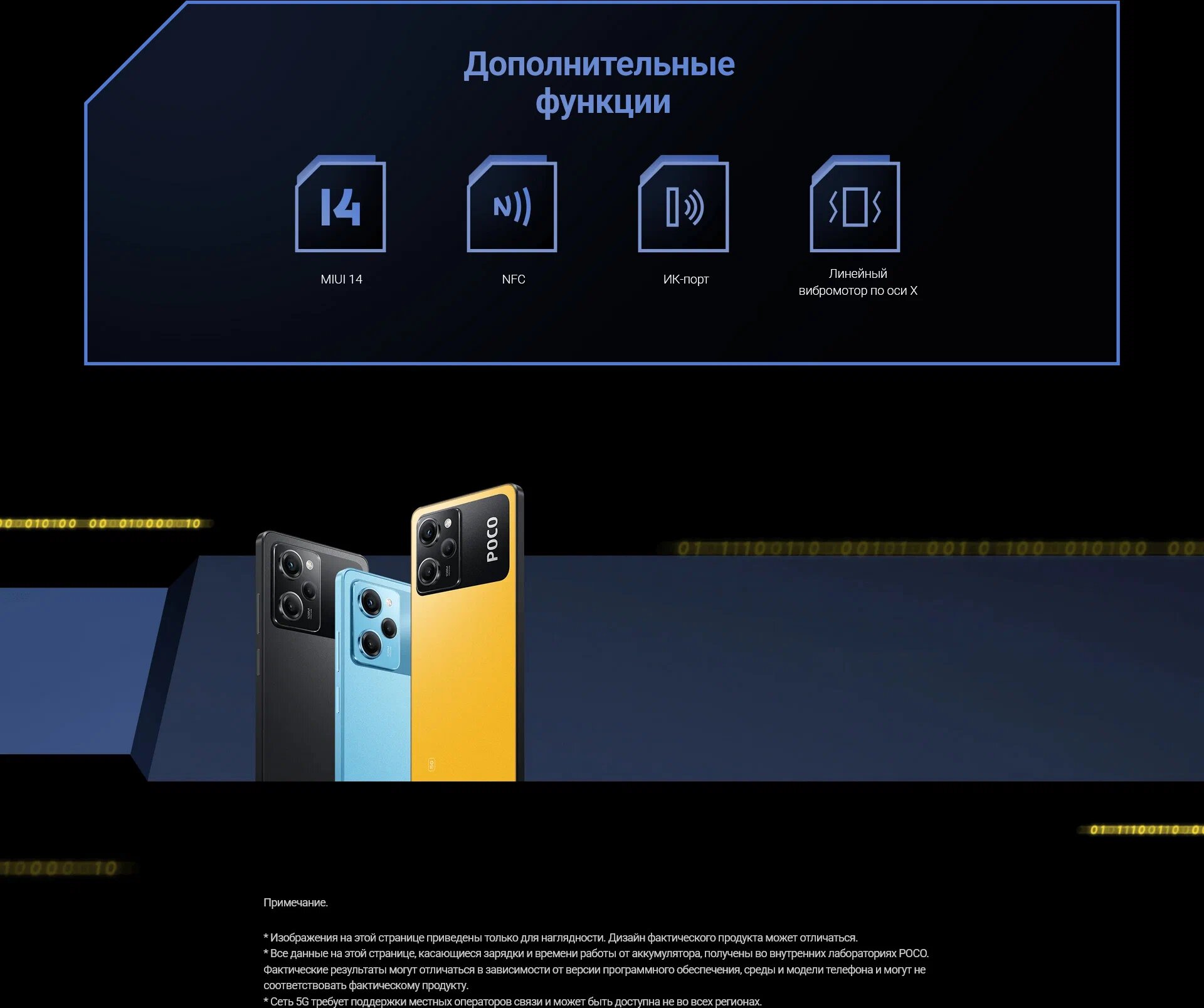 | Комплектация | смартфон POCO X5 Pro 5G, адаптер питания, кабель USB Type-C, инструмент для извлечения SIM-карты, защитный чехол, краткое руководство по началу работы, гарантийный талон |