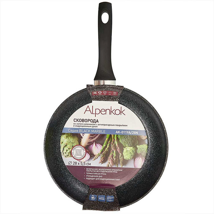 Ниже Вы можете прочитать отзывы на Сковорода 28 см алюминиевая с индукционным дном и антипригарным покрытием "BLACK MARBLE" Alpenkok AK-0119A/28N, ознакомится с подробными характеристиками, посмотреть интересные обзоры и фотографии на Сковорода 28 см алюминиевая с индукционным дном и антипригарным покрытием "BLACK MARBLE" Alpenkok AK-0119A/28N.