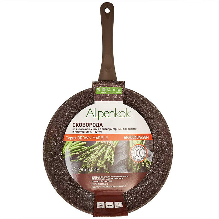 Сковорода ALPENKOK AK-0040A/28N BROWN MARBLE 28см алюминиевая с антипригарным покрытием / Сковорода 28 см