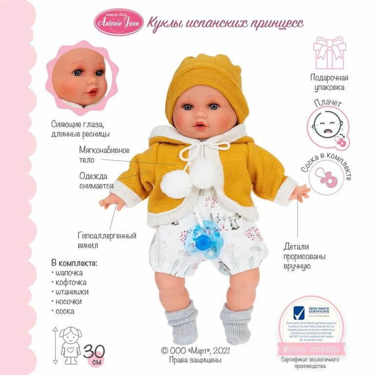 Кукла говорящая Antonio Juan Реборн Инесса в желтом 30 см 1341 интересное: