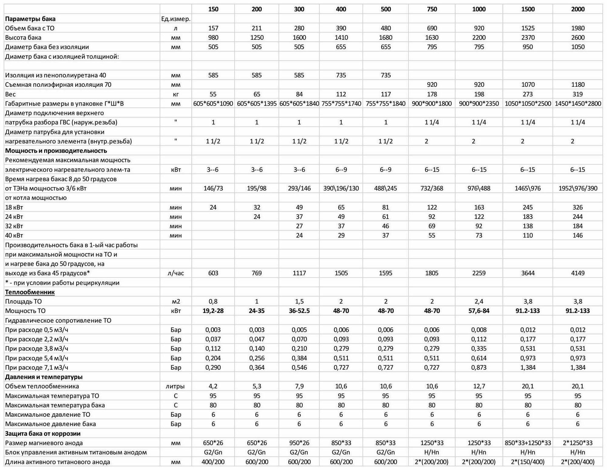 | Объем бака | 150 л |