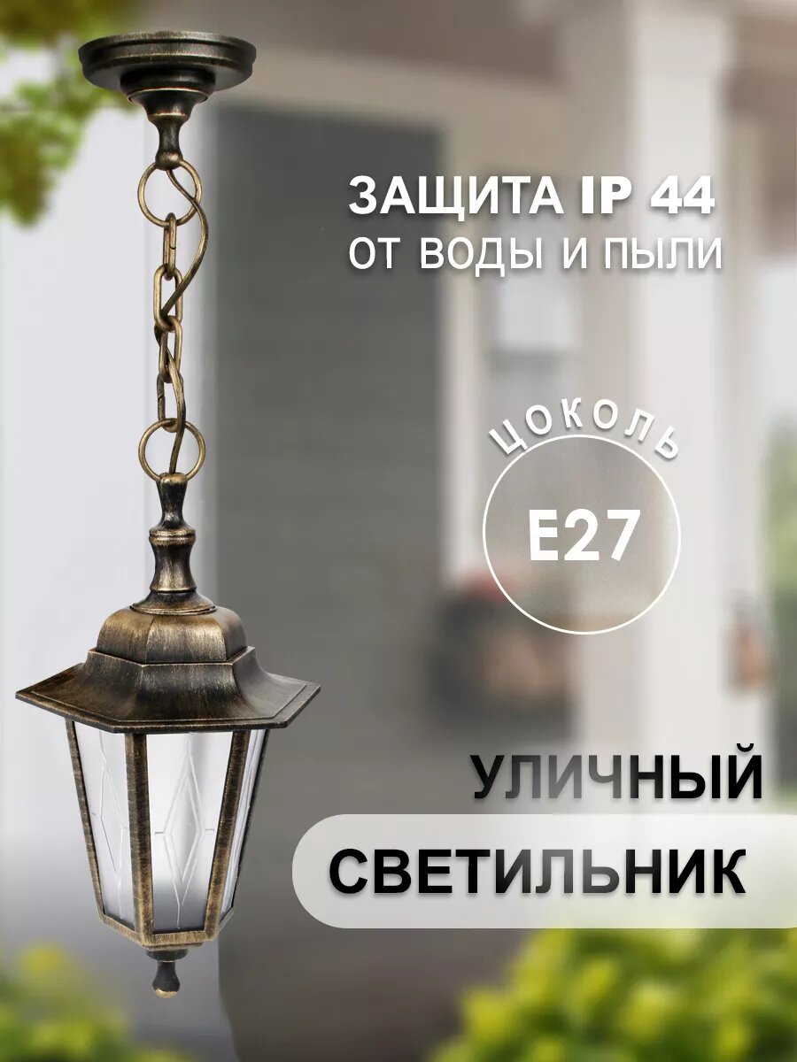 Светильник уличный садово-парковый на цепи IP44 13851 Camelion PP4105 220В 60Вт Е27 шестигранный черный с бронзой