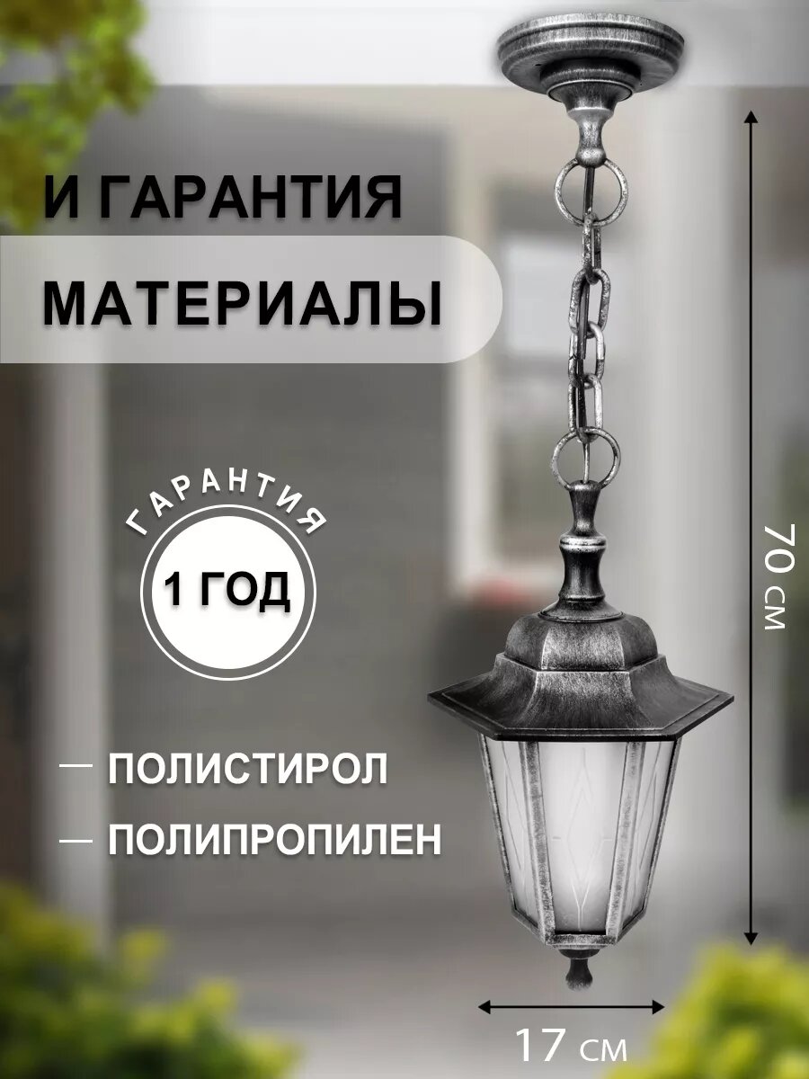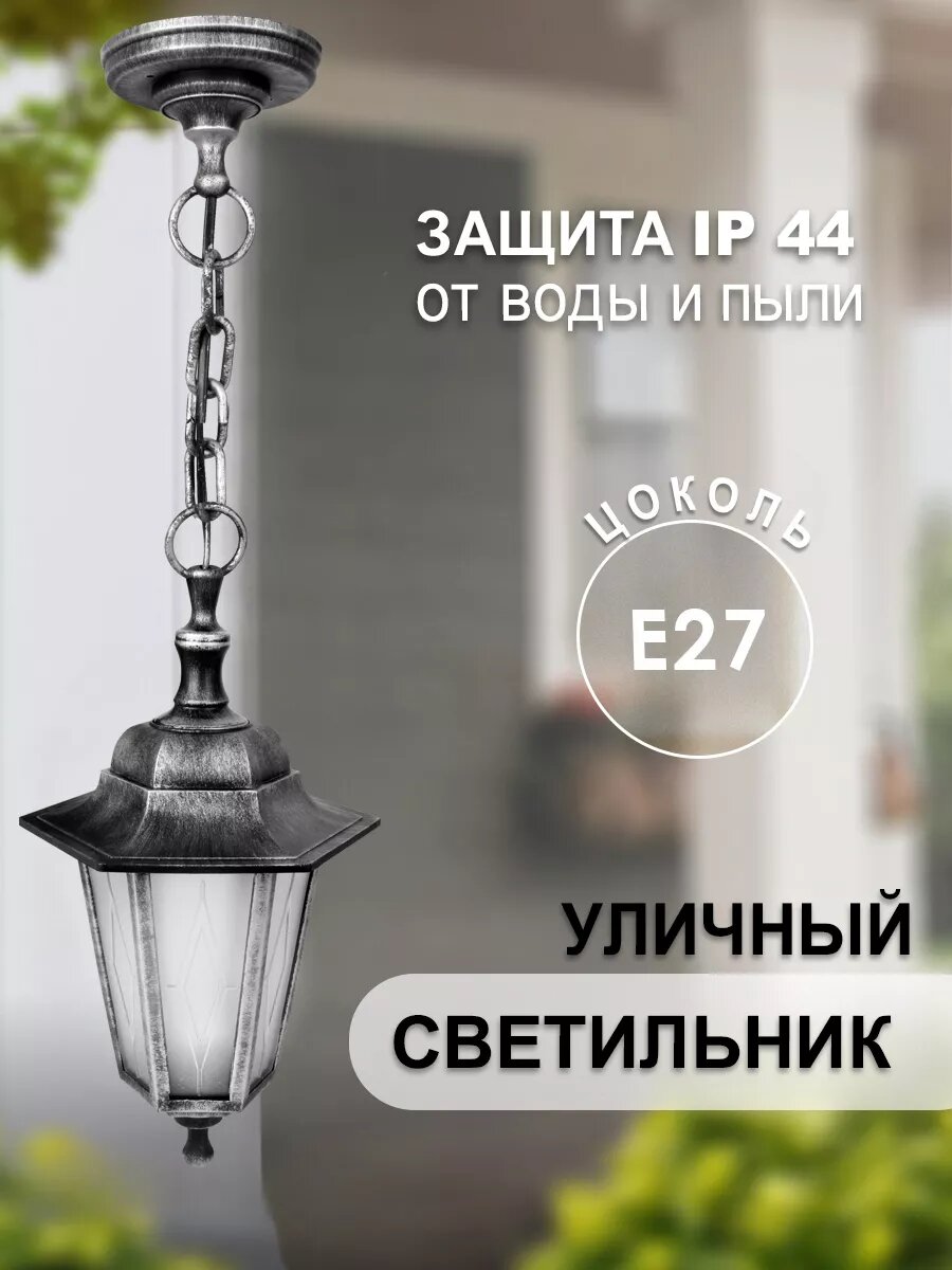 Светильник уличный садово-парковый на цепи IP44 13852 Camelion PP4105 220В 60Вт Е27 шестигранный черный с серебром