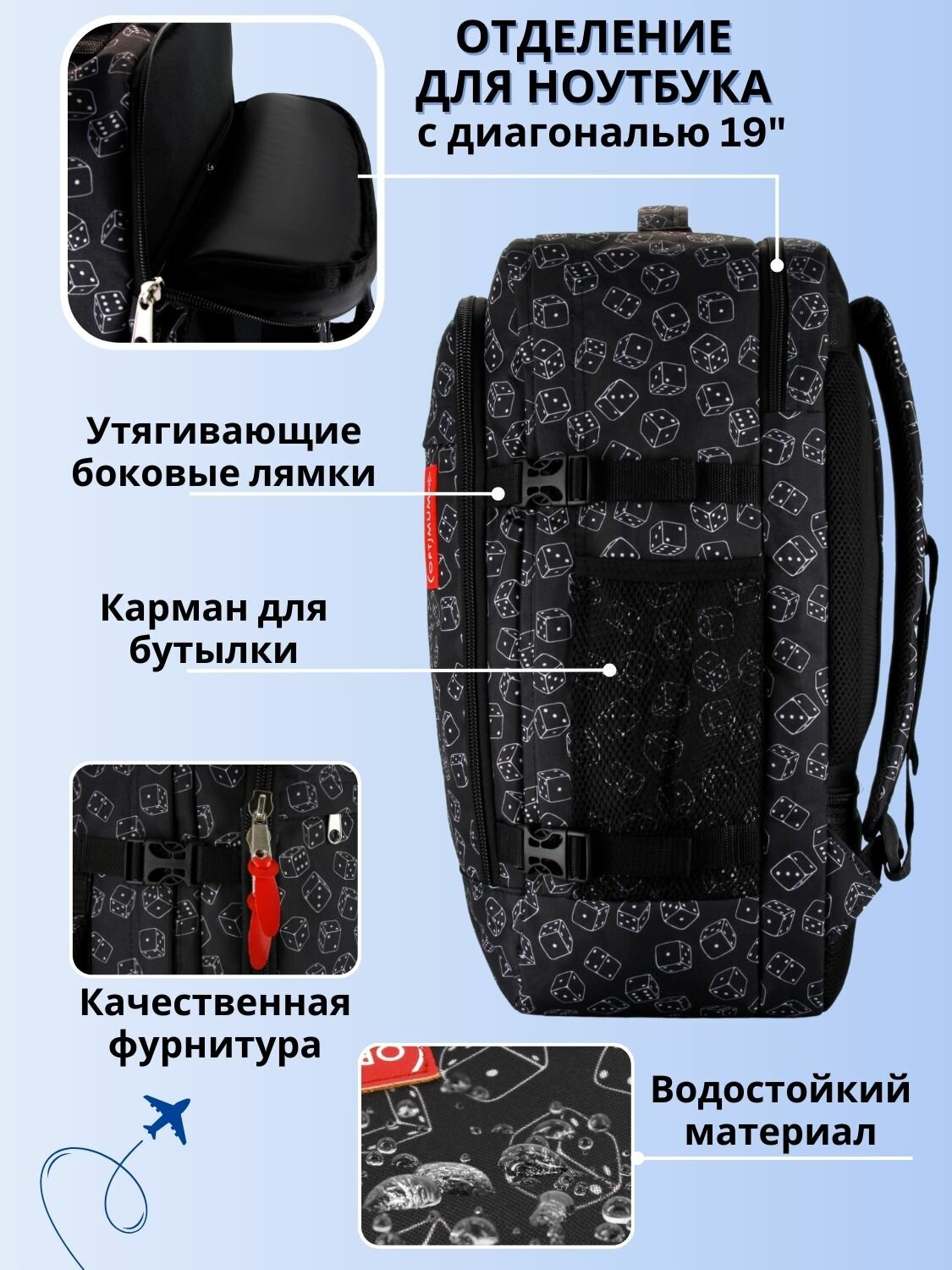 Рюкзак сумка чемодан ручная кладь S в самолет дорожная 44 л, черный
