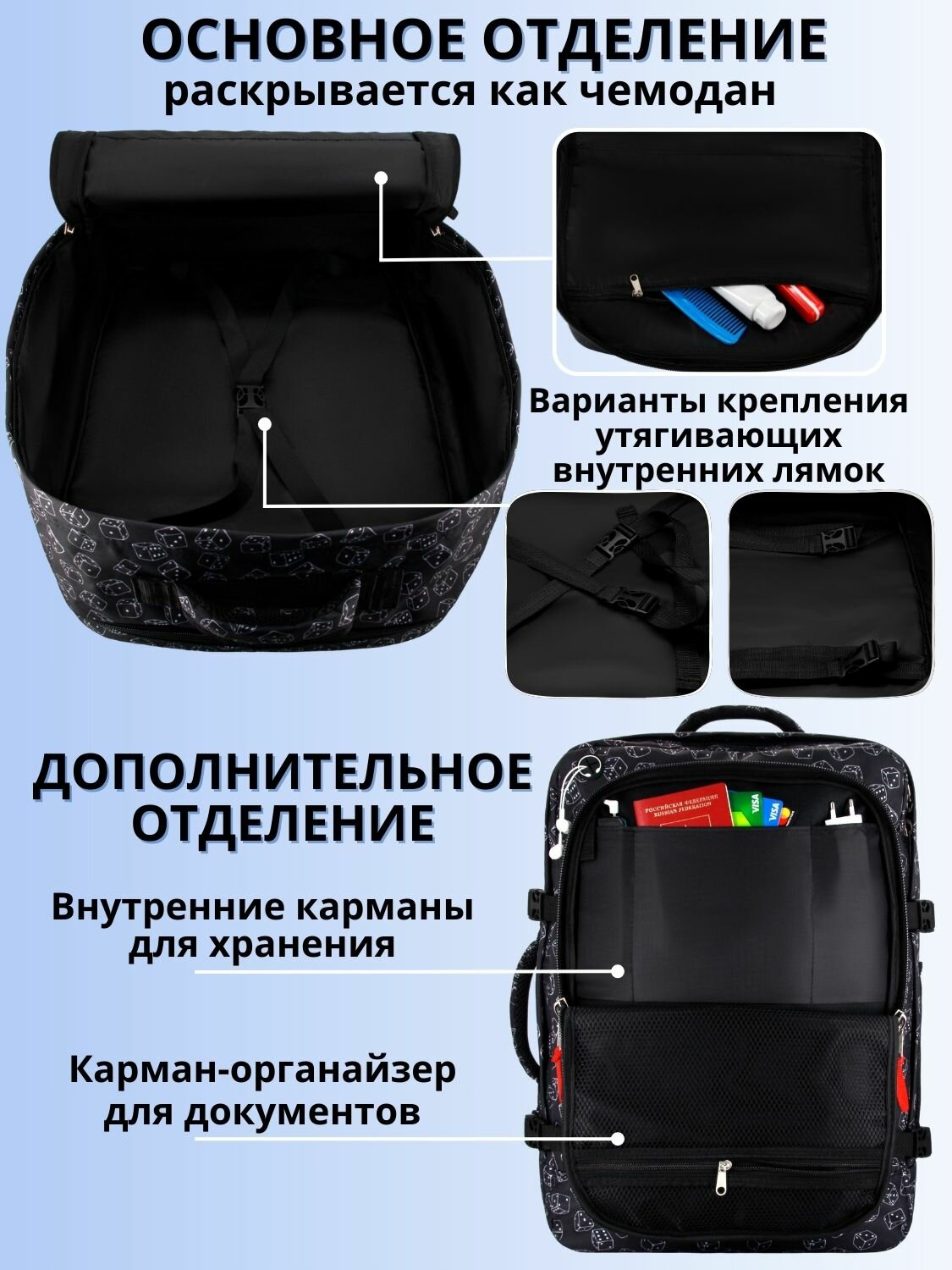 Рюкзак сумка чемодан ручная кладь S в самолет дорожная 44 л, кости