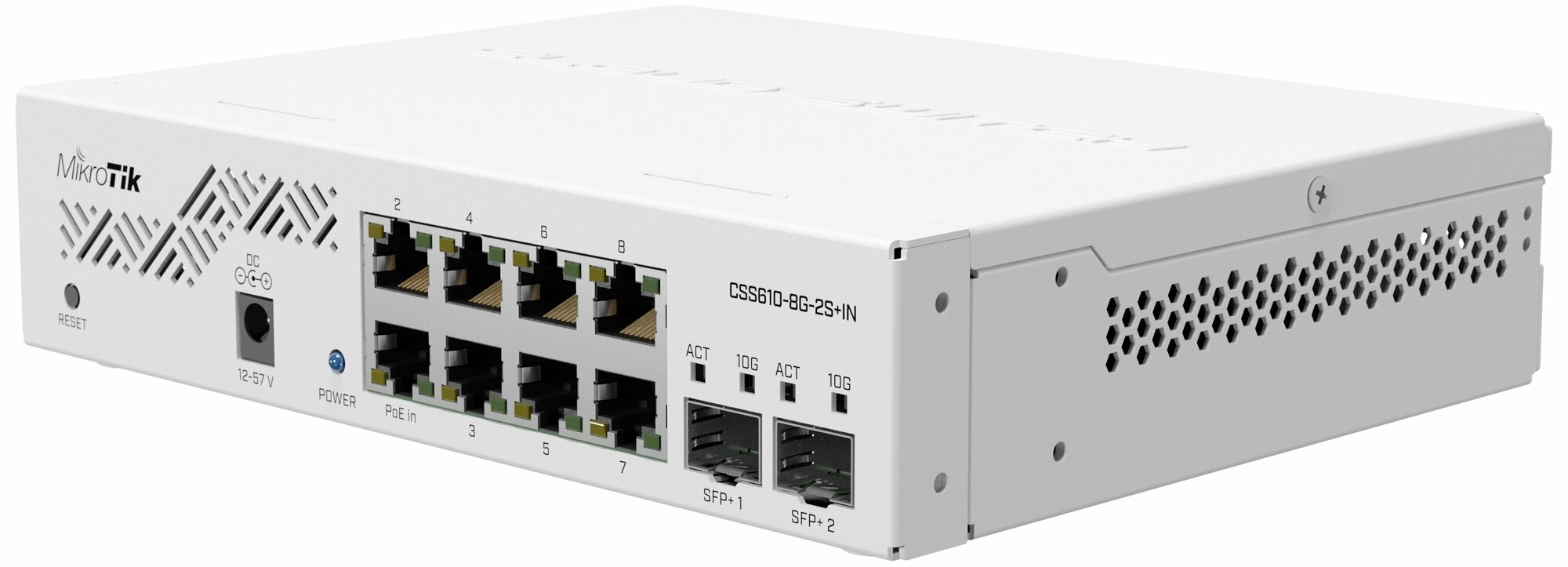 Ниже Вы можете прочитать отзывы на MikroTik CSS610-8G-2S+IN Коммутатор управляемый Cloud Smart Switch, 10 портов, 8x1 Гбит/с, SFP/uplink SFP+ 2x10 Гбит/с, ознакомится с подробными характеристиками, посмотреть интересные обзоры и фотографии на MikroTik CSS610-8G-2S+IN Коммутатор управляемый Cloud Smart Switch, 10 портов, 8x1 Гбит/с, SFP/uplink SFP+ 2x10 Гбит/с.