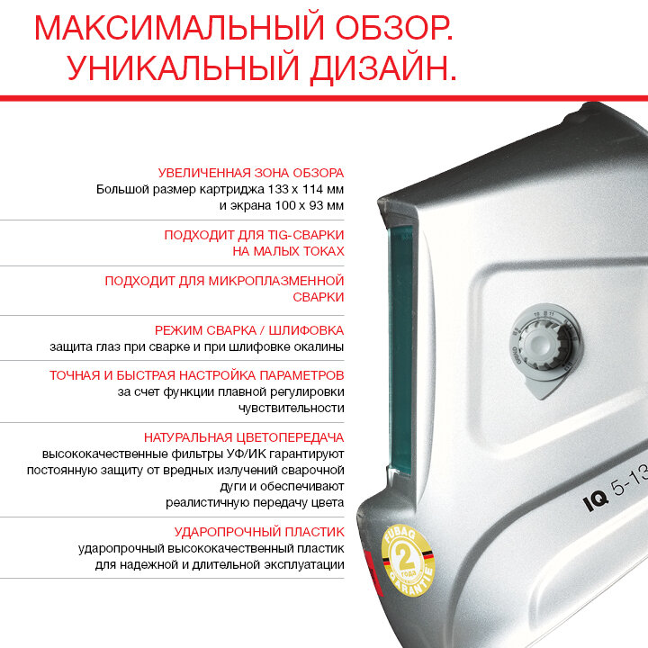 | Плюсы: | Красивая. Зона обзора. Подходит для TIG сварки |