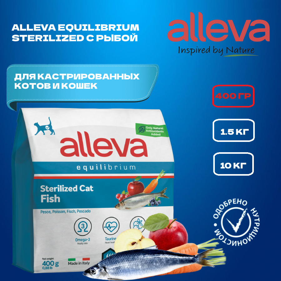 ALLEVA EQUILIBRIUM CAT для кошек Sterilized Fish / кастрированных котов и стерилизованных кошек с рыбой 0,4 кг 1080 новинка,
