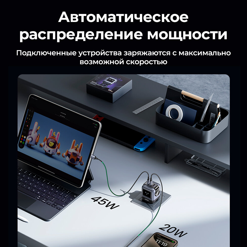 СохранитьУниверсальное зарядное устройство Ugreen GAN 65w Nexode ROBOT, 2 Type-C и 1 USB вход. Быстрая зарядка для телефона, ноутбука, планшета. интересное: