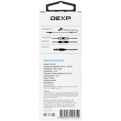 Проводные наушники DEXP EH-250 белый интересное: