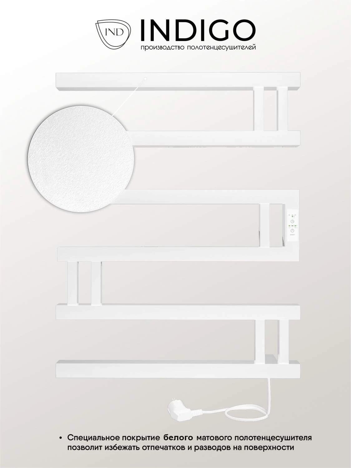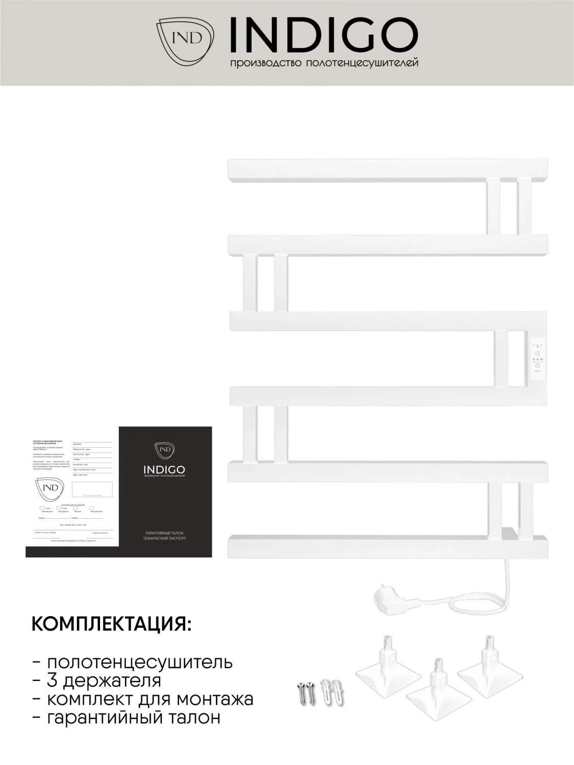Полотенцесушитель электрический INDIGO Muza 40/50 с таймером белый