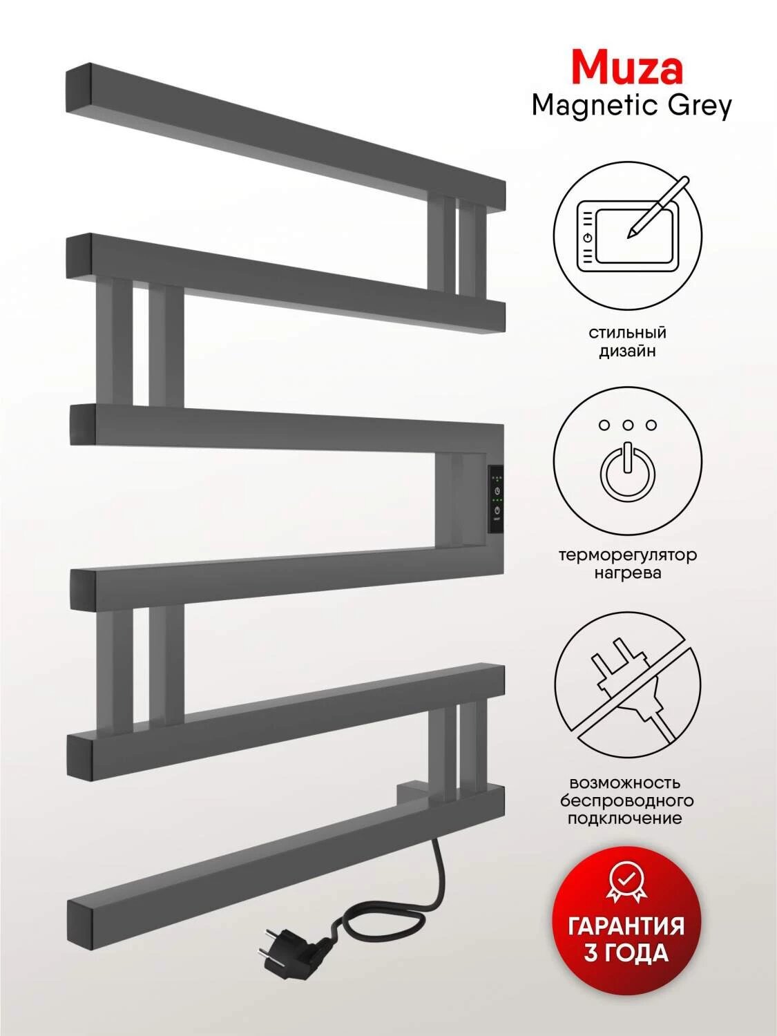 Купить Полотенцесушитель электрический Indigo Muza 60/50 Magnetic Grey (таймер, скрытый монтаж, подключение: правое), модель DGM60-50MGRt