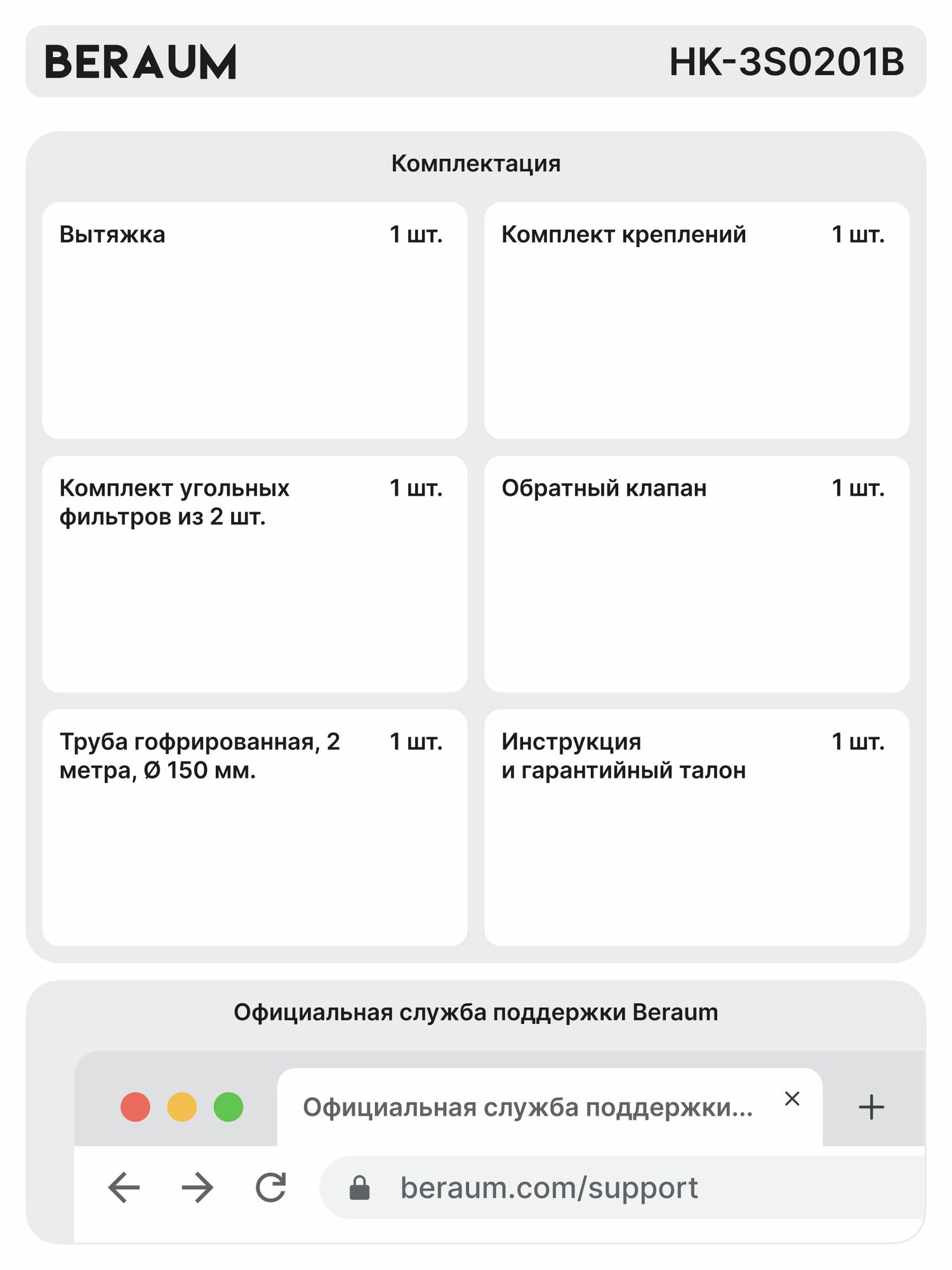 Вытяжка кухонная Beraum HK-3S001BE