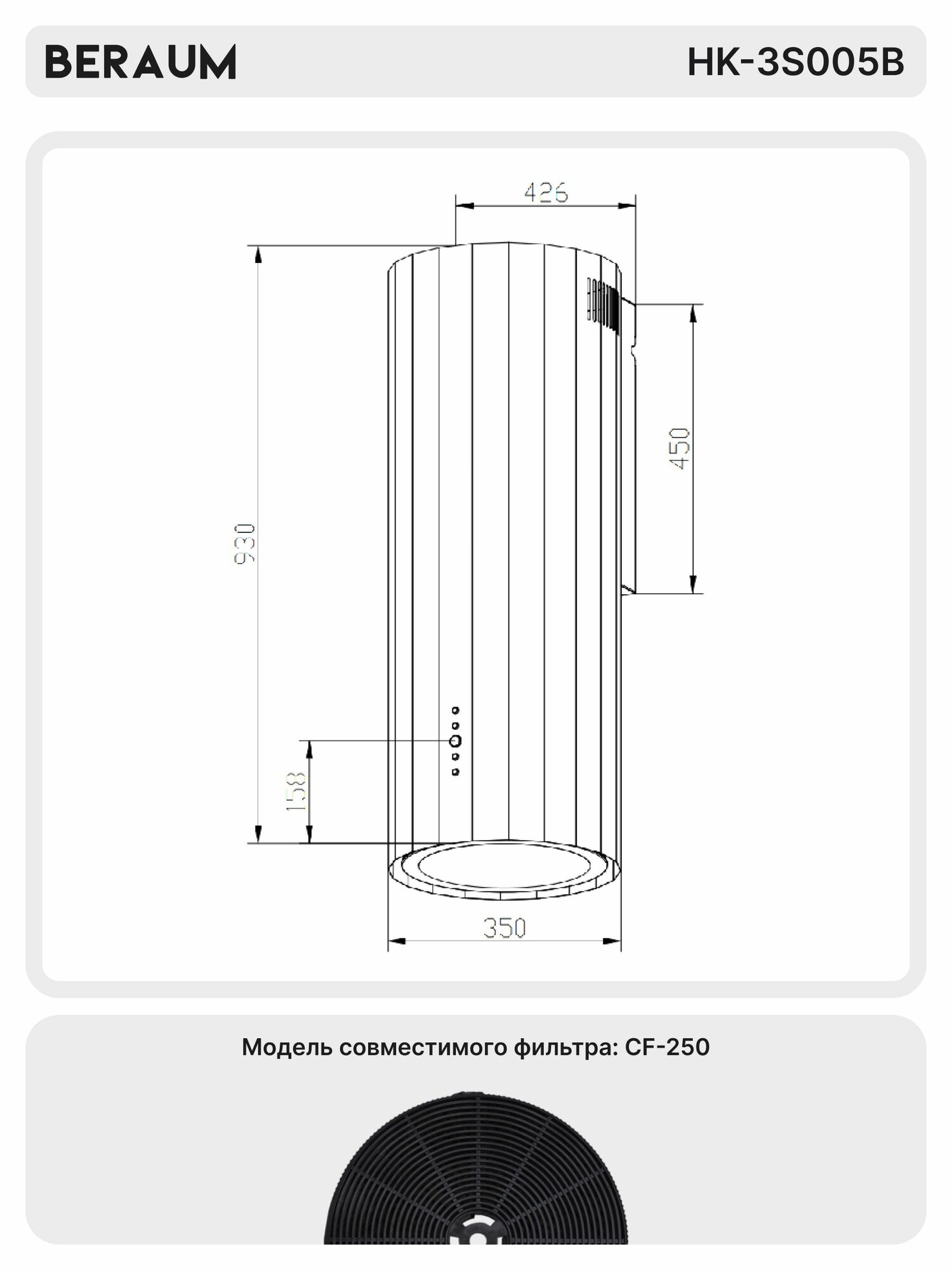 СохранитьВытяжка пристенная цилиндрическая Beraum HK-3S005B, чёрный, отвод и циркуляция интересное:
