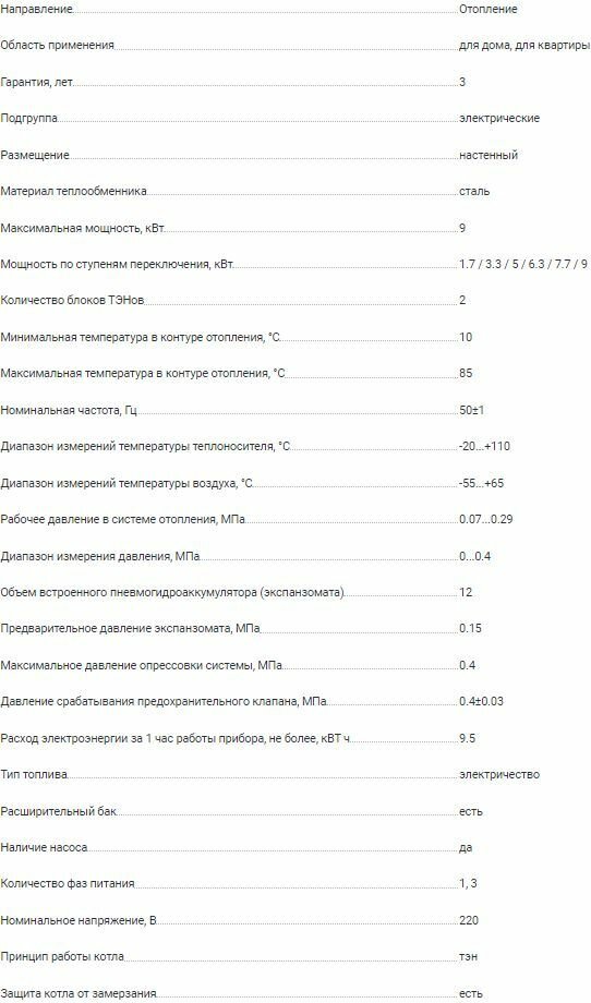 | Плюсы: | Смотрел обзор на данный котел, понравился интервал переключения мощности (шаг по 2квт от 2х-12квт), качество, наше производство, наличие датчиков в комплекте. |