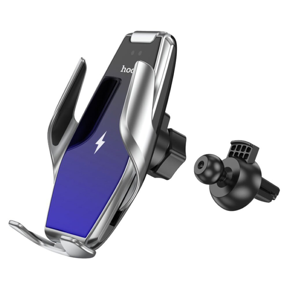 Держатель c беспроводной зарядкой на торпеду/воздуховод Hoco S14 15W серебристый