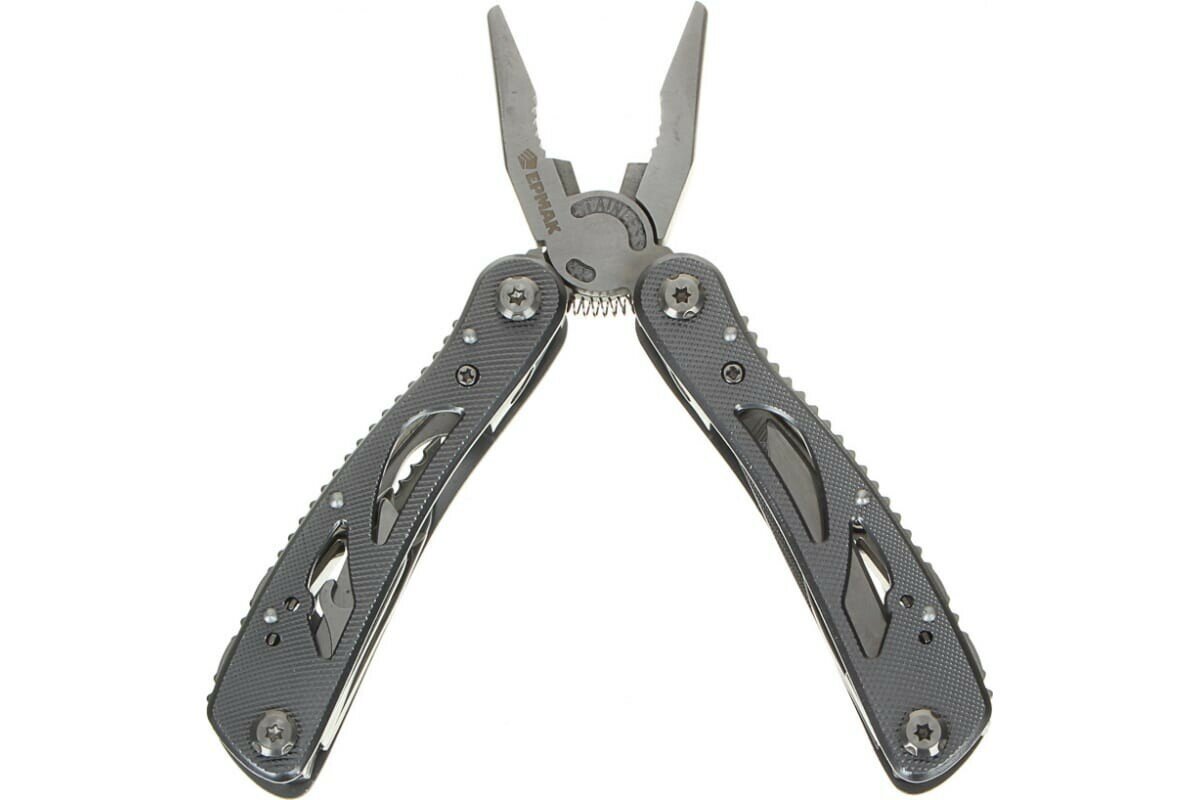 Многофункциональный инструмент ермак, 11 функций, нержавеющая сталь / Мультитул универсальный 118-169 / Нож складной, пассатижи, отвертка
