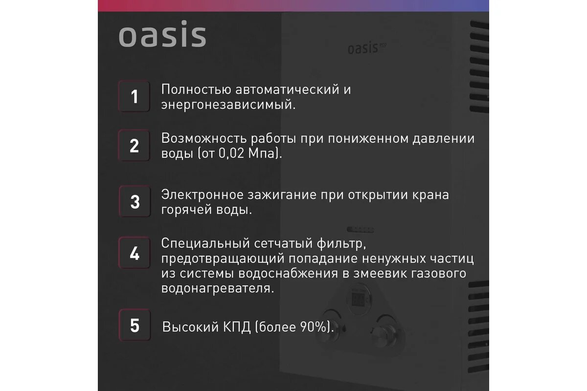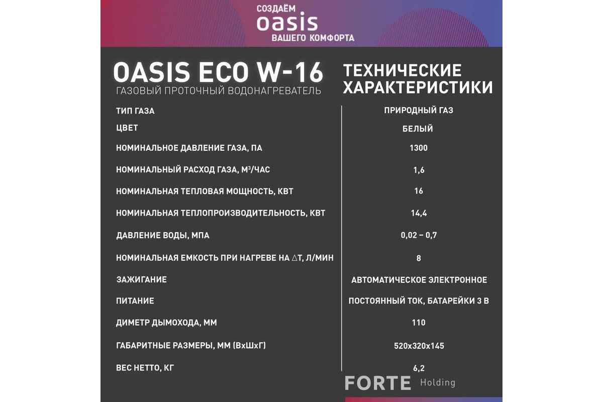 OASIS Газовый проточный водонагреватель Eco W-16 4670004375501 интересное: