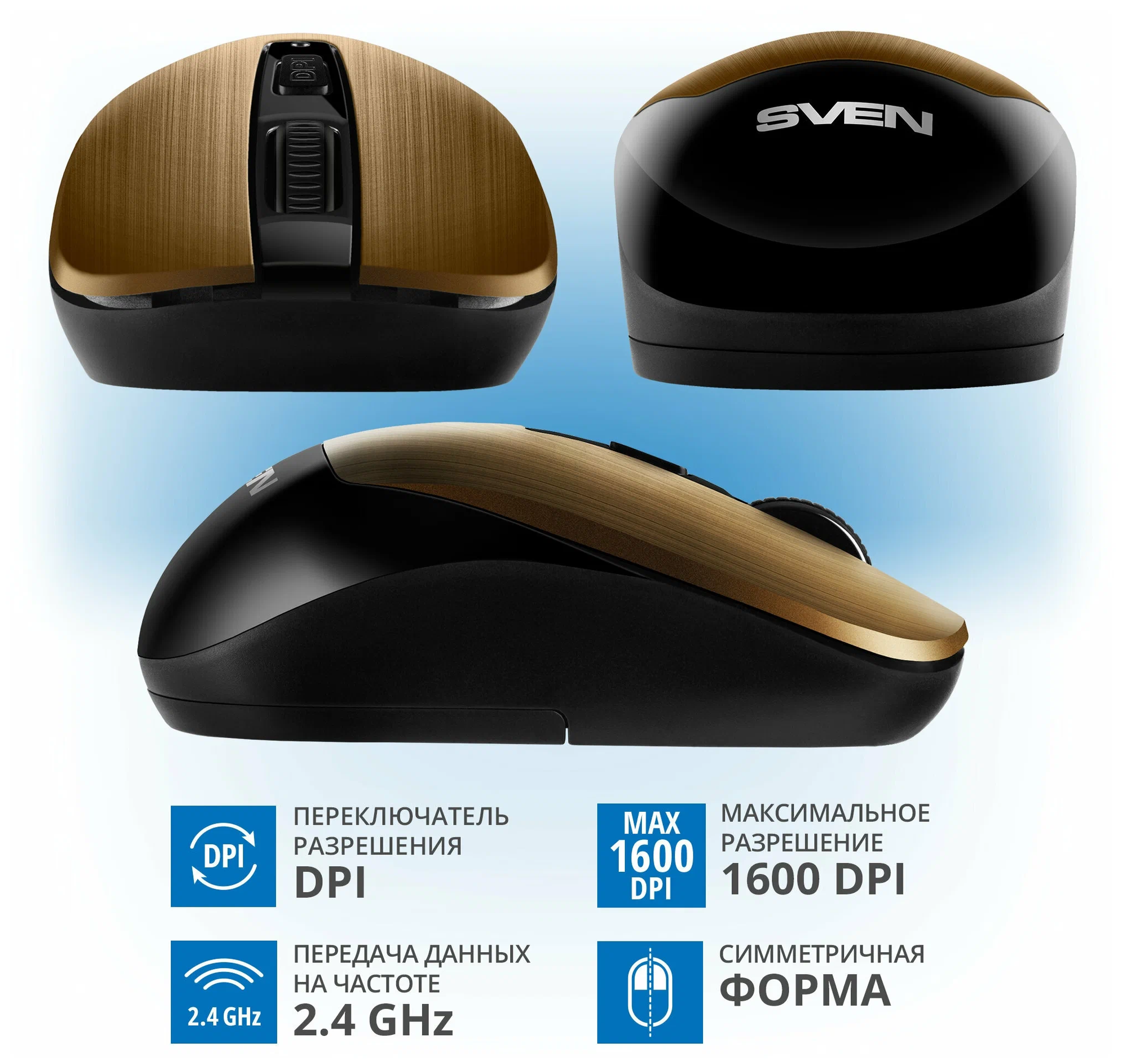 Беспроводная мышь RX-380W античная бронза (2,4 GHz, 3+1кл. 800-1600DPI, блист.)