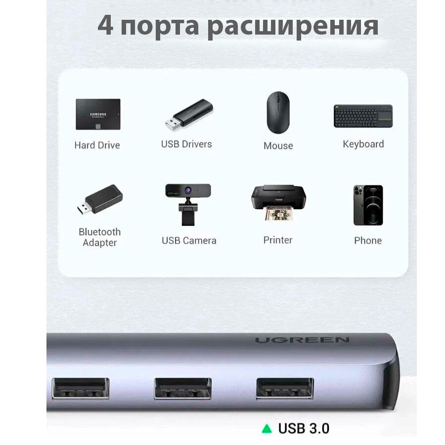 Адаптер мультипортовый UGreen CM417 5 в 1, серый интересное: