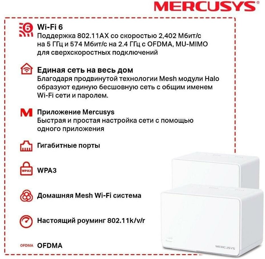 Домашняя Mesh Wi-Fi система Mercusys Halo H80X (3-pack) интересное: