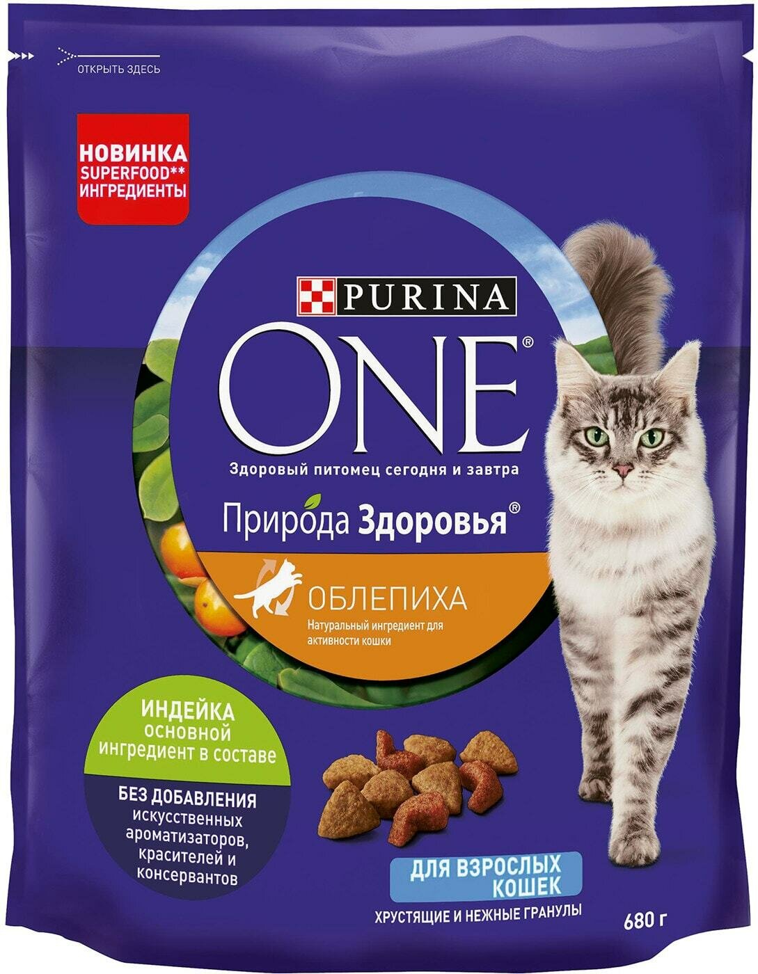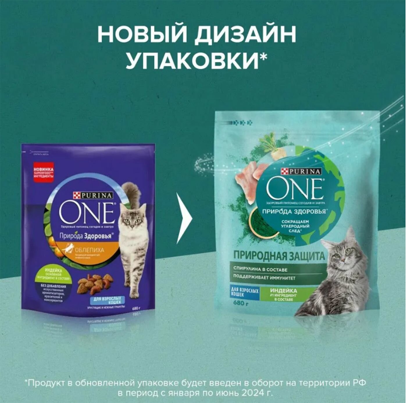 Сухой корм Purina ONE Природа Здоровья для взрослых кошек, с высоким содержанием индейки, облепихи, 680 г