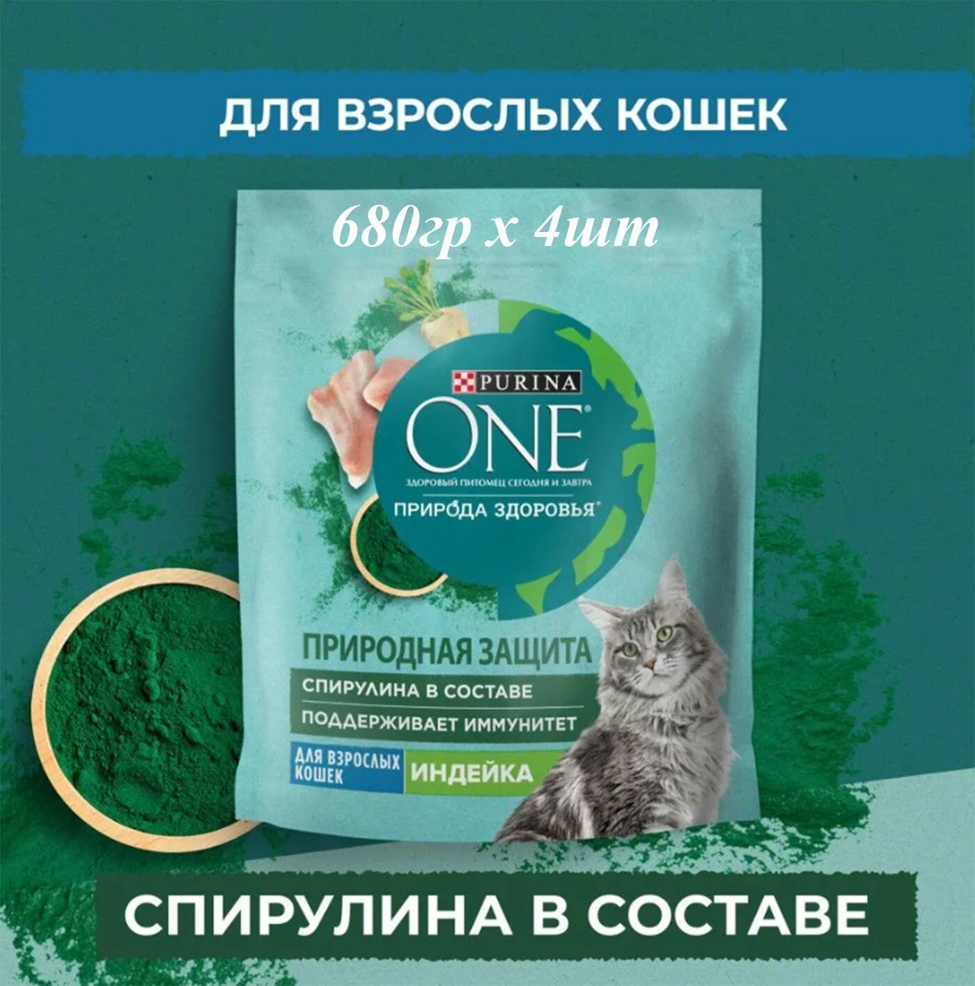 Купить Purina One Сухой корм для кошек индейка и спирулина 680гр х 4шт