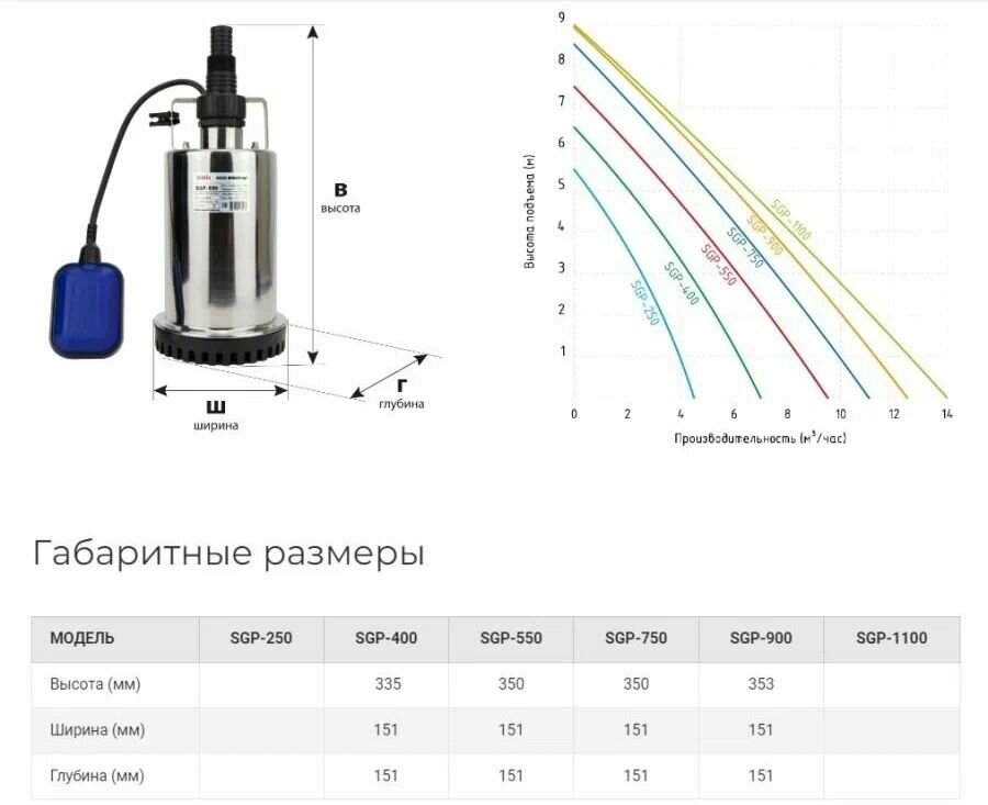 | Максимальный напор | 8 м |