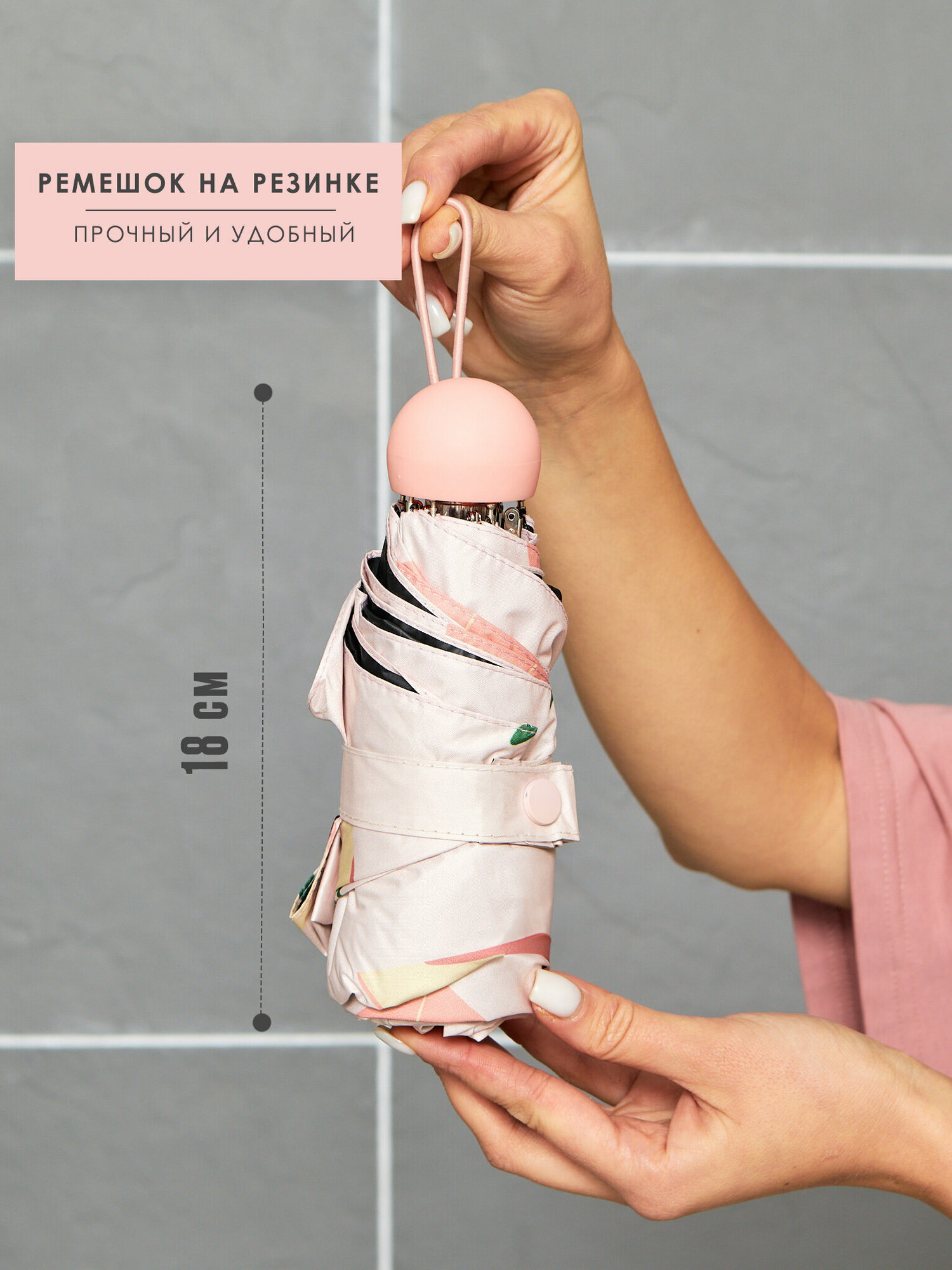 Зонт женский мини / компактный зонт облегченный / маленький зонт / зонт капсула с принтом персик