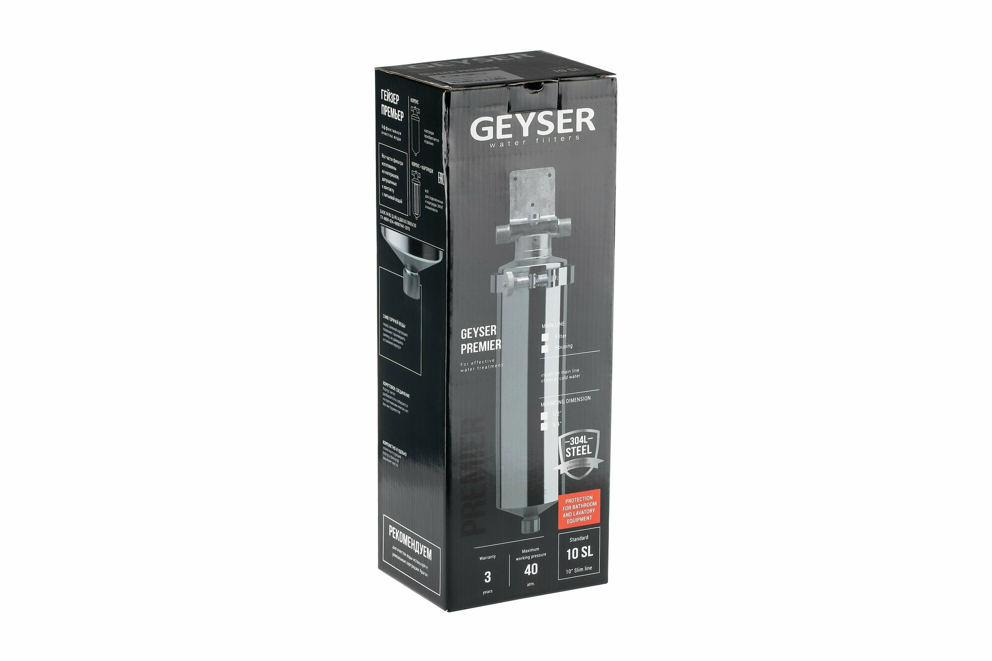 | Дополнительная информация | присоединительный размер: 3/4"; температура воды (°С): 4-95; выдерживает давление до 8 атм.; материал корпуса: пищевая нержавеющая сталь 304L; используется с картриджами стандарта Slim Line 10" |
