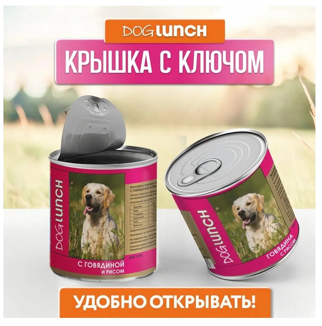 Купить DOG LUNCH для взрослых собак с говядиной и рисом (750 гр х 12 шт)