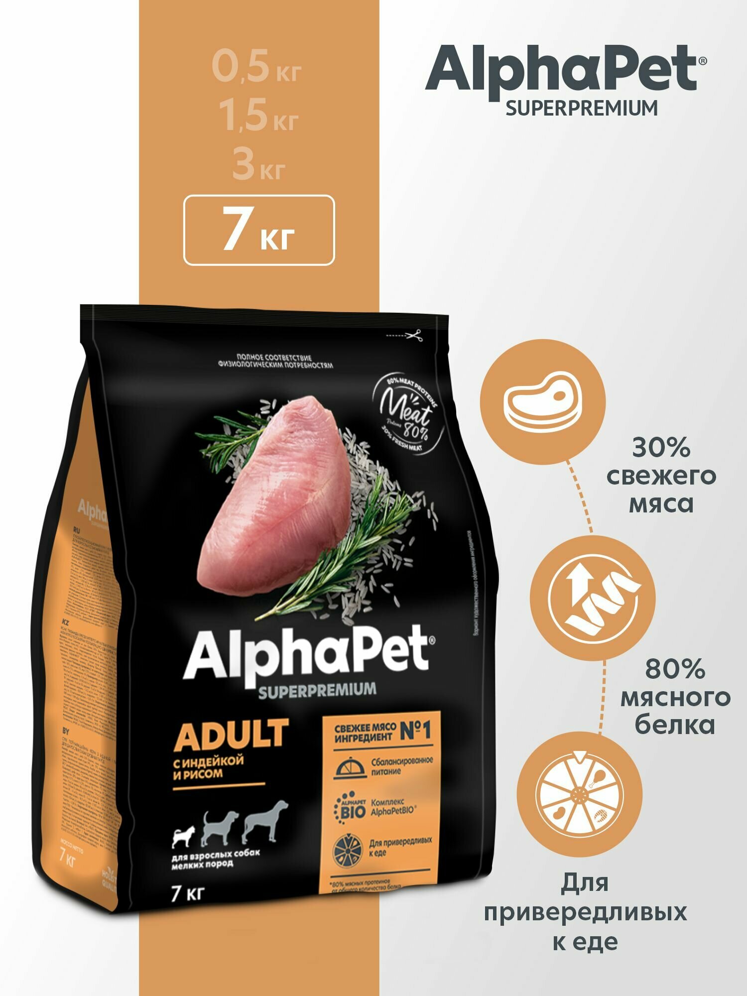 Купить ALPHAPET Adult Корм сух. индейка с рисом д/собак мелких пород 7кг