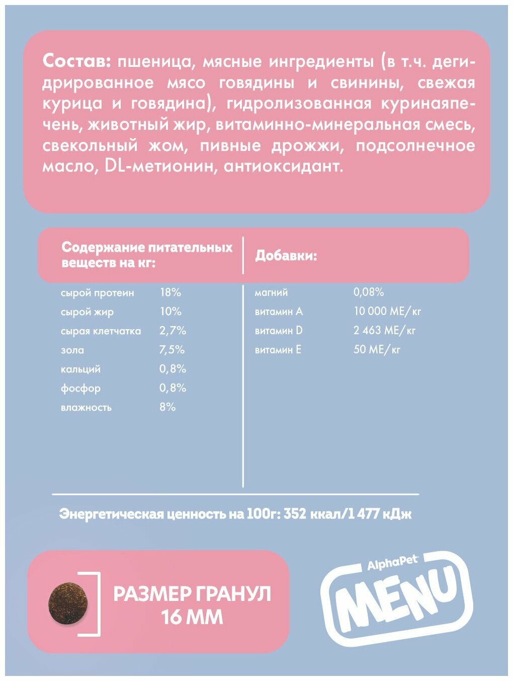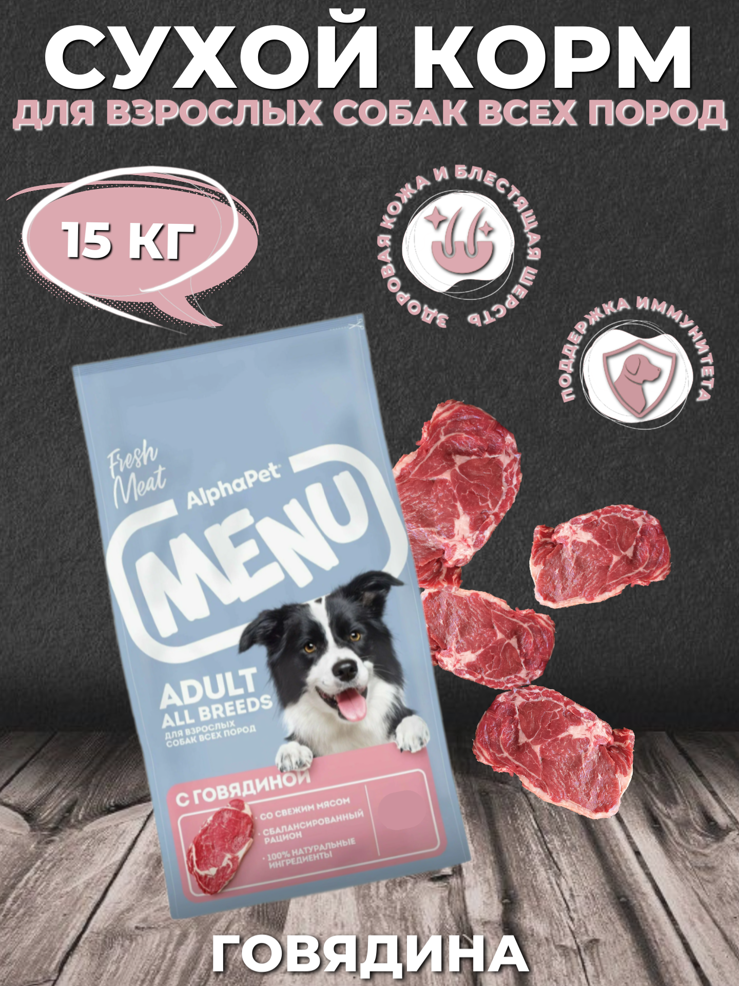 Альфа Пет 52758 MENU сух. двзрослых собак всех пород с Говядиной 15кг, 108350 (2 шт)