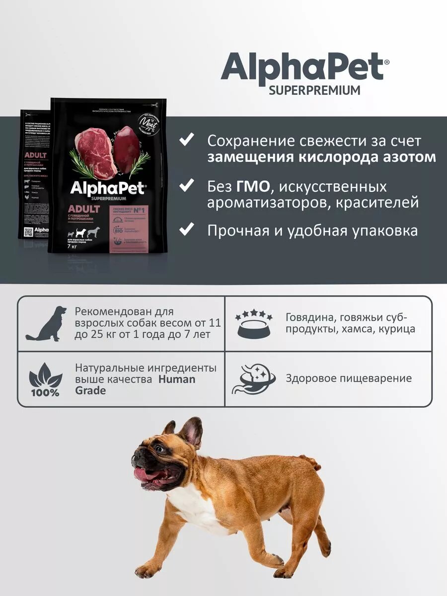 СохранитьСухой корм для собак средних пород AlphaPet Superpremium, с говядиной и потрошками, 7кг интересное: