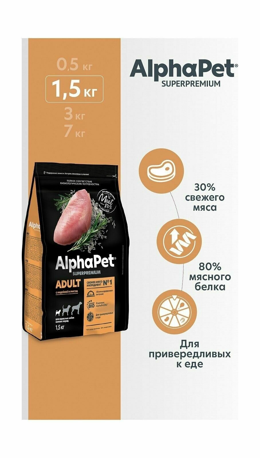 Купить Сухой полнорационный корм AlphaPet Superpremium для собак мелких пород, с индейкой и рисом, 1.5 кг