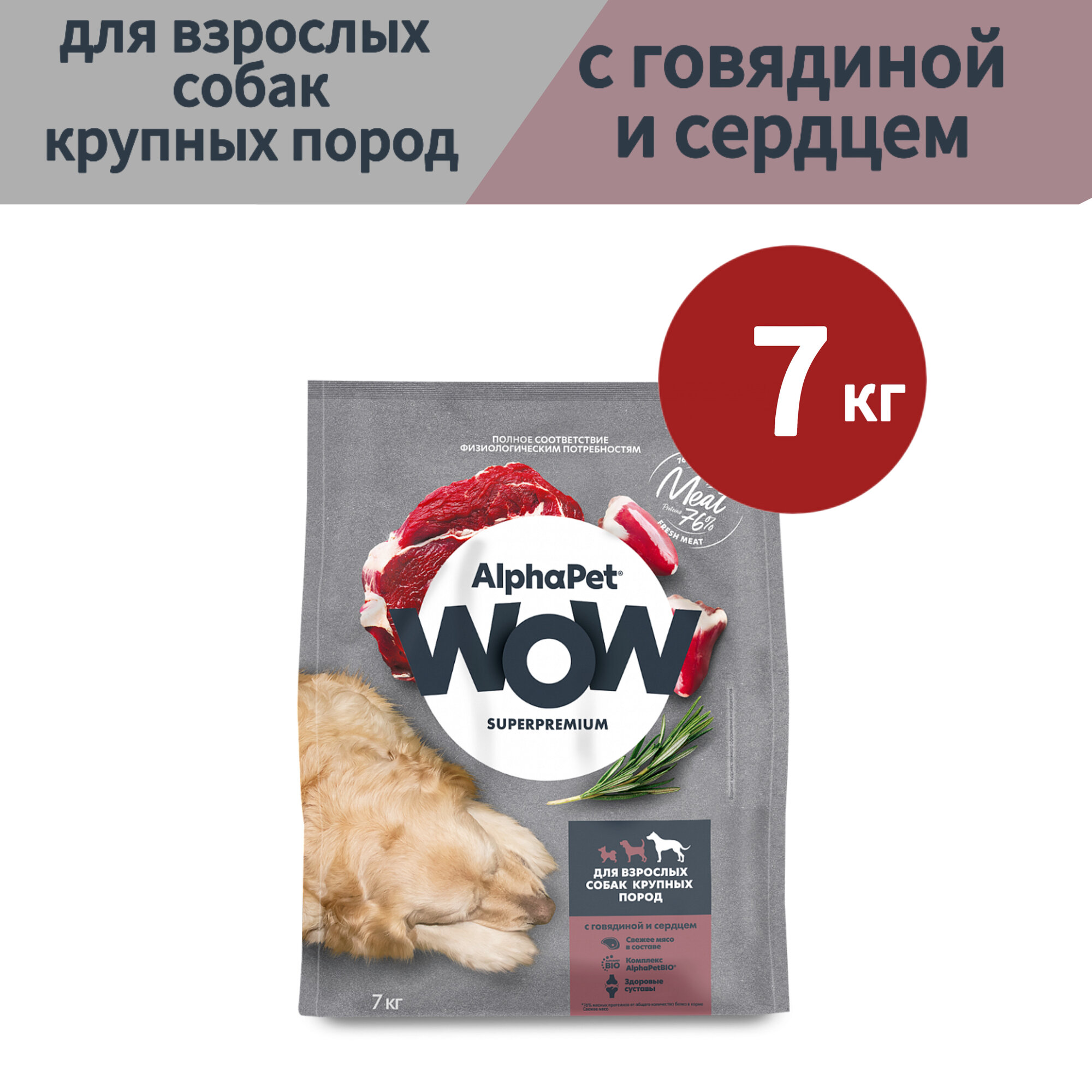 Купить Сухой корм для собак AlphaPet WOW Superpremium, для крупных пород, с говядиной и сердцем, 7кг