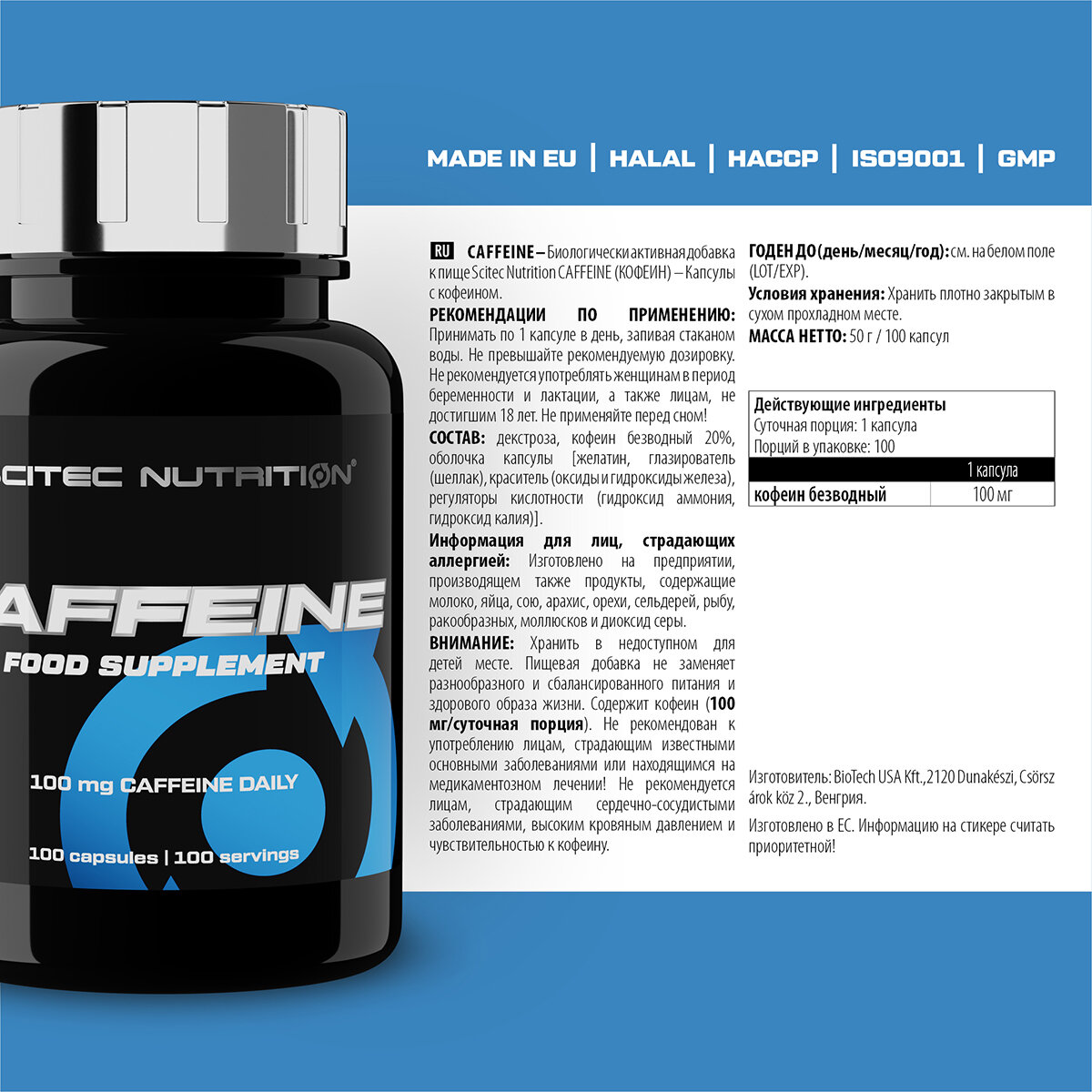 Кофеин в капсулах, Scitec Nutrition, Caffeine 100 капсул, 100 мг/шт интересное: