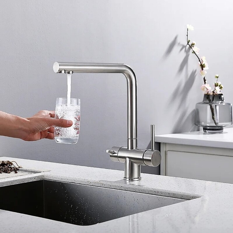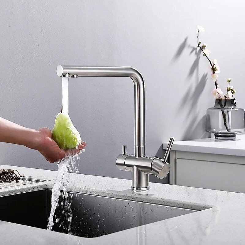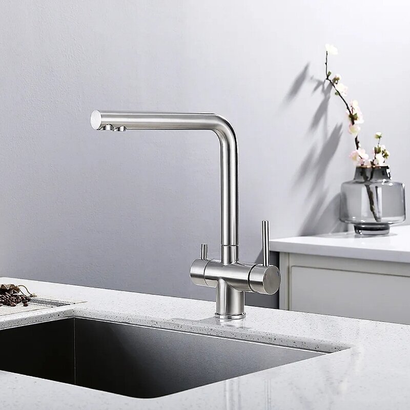 Смеситель для кухни с подключением фильтра питьевой воды Frap F43899-3 сатин, нержавеющая сталь